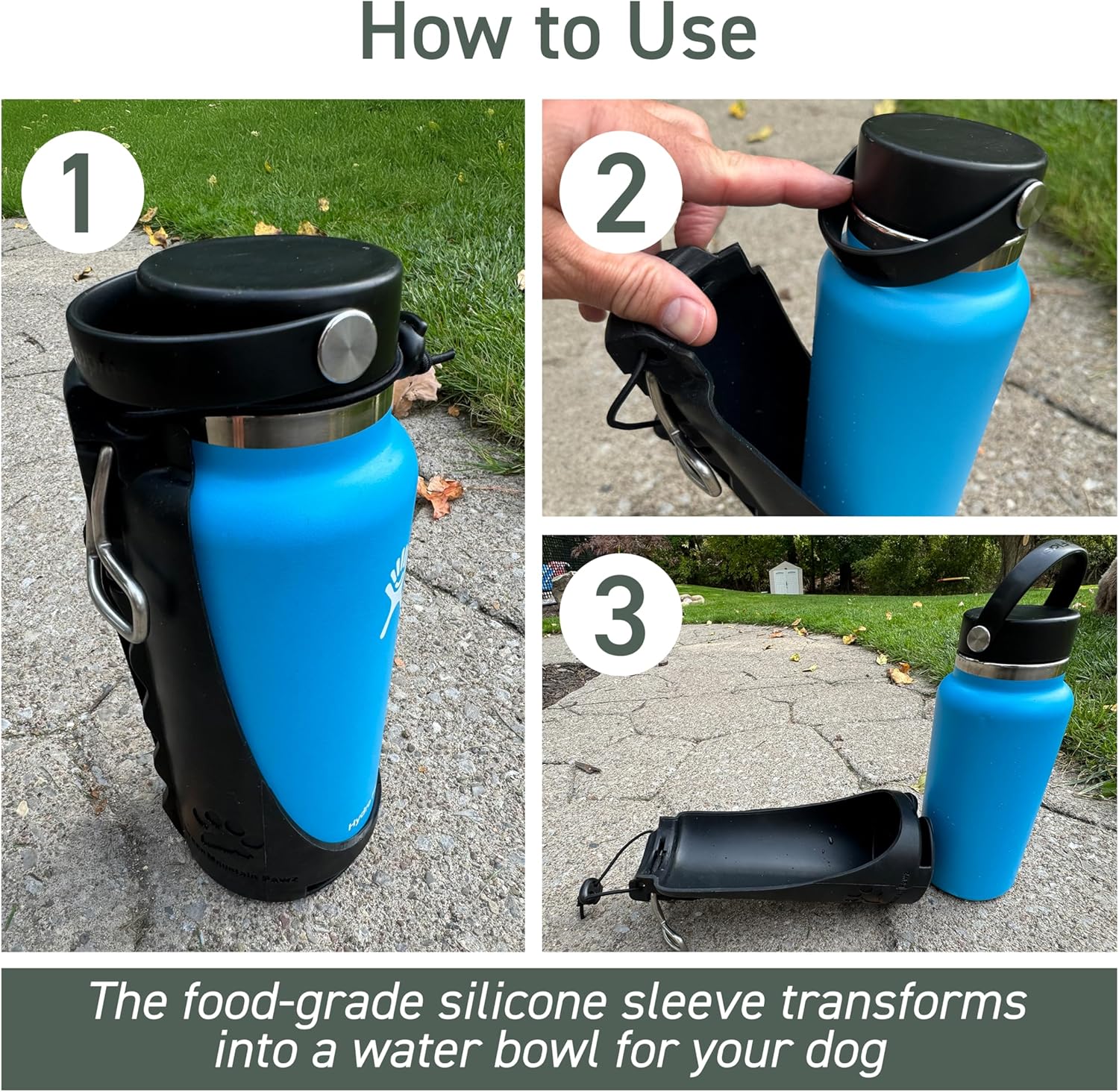 Patented 2-in-1 Design – Hydration Made Easy: Easily transform your 32 oz bottle into a no-spill dog water bowl with a stable 16 oz capacity. Pour water into the sleeve for your pup while keeping your own bottle clean. No need for two bottles anymore. BOTTLE NOT INCLUDED.