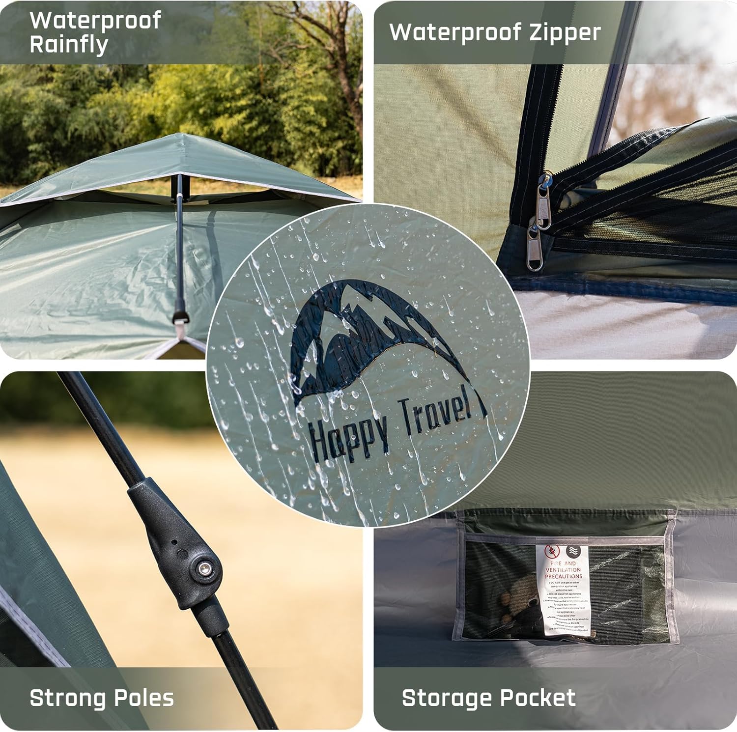 【All around protection】:The waterproof tent made of 210D Oxford cloth have three layers of waterproof material,PU coating 3000MM water resistant fabric.And the bottom of the use of PU3000 waterproof Oxford cloth effectively filters the ground moisture and rain leakage phenomenon.The firm poles, made of high strength fiberglass no worry about being blown away by the wind.Your purchase comes with return and exchange service,friendly customer service. If you have any questions, please contact us.