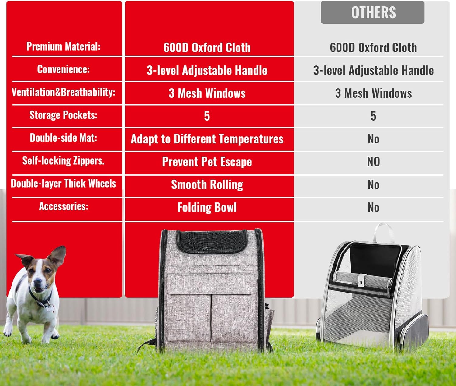 Versatile and User-Friendly: With multiple carrying options, including handheld, backpack-style, or rolling with a 3-level adjustable pull rod, this carrier adapts to your needs. The self-locking zipper ensures your pet stays secure, while detachable Velcro allows for effortless transport and storage.