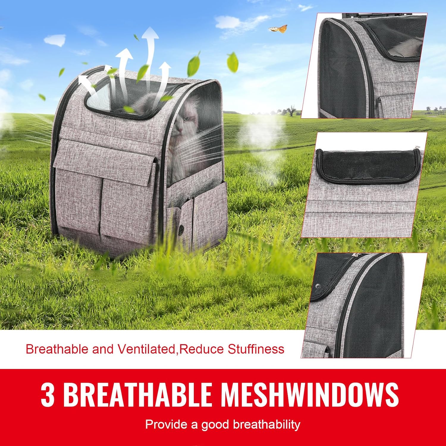 Durable and Reliable: Constructed from thickened 600D Oxford cloth, the Happybuy cat carrier supports small pets weighing up to 18 lbs. Built for longevity, it’s ideal for car rides and vet visits. Five storage pockets provide ample space for snacks and supplies, keeping everything organized.