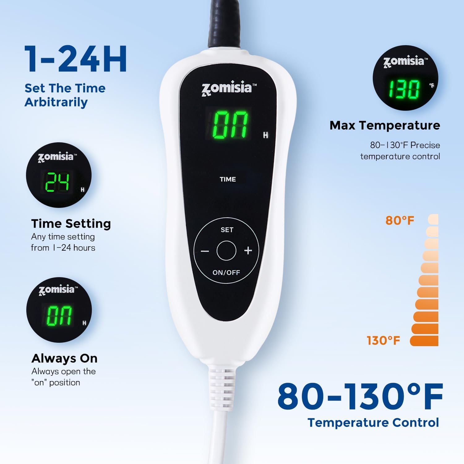 Timed Temperature Control: The cat house with heating pad features a timer and temperature control function, allowing you to adjust the settings according to your pet’s needs. The timer has 24 settings plus 1 continuous mode, and there are 11 temperature levels (80°F to 130°F) to choose from.