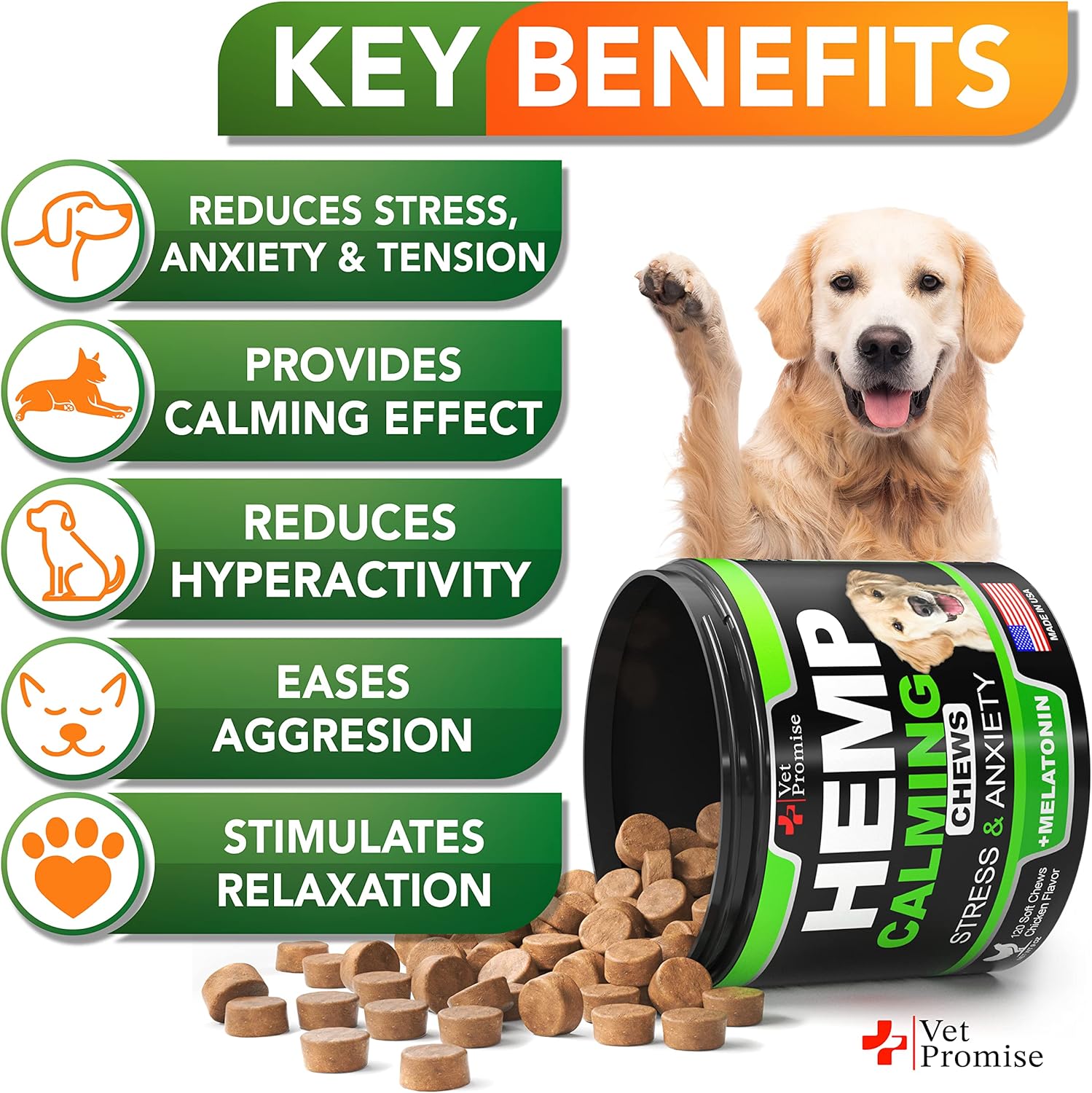 Relieve Anxiety and Stress: Our calming dog treats alleviate symptoms of anxiety and stressful situations like growling, barking, scratching, separation, car rides, vet visits, thunderstorms