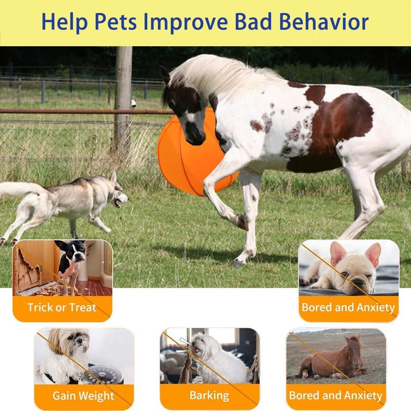 “Boredom-Buster 9000 – From Grumpy Goats to Zoomie Doggos!” Got a moody mare? A couch-potato cow? Unleash the “Curiosity Catalyst”! Builds courage as timid animals learn to interact. Transform your pasture into SmackDown meets Olympic agility course. Works for: Donkeys needing drama, pigs craving puzzles, even that derpy Great Dane who eats couches.