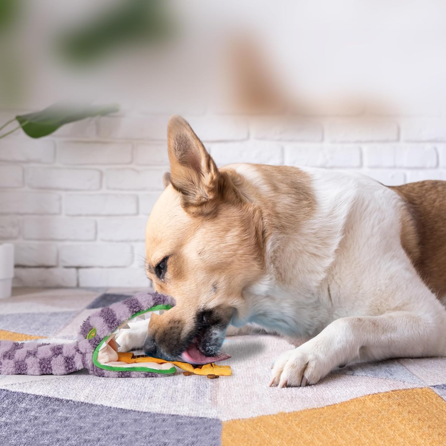 Snack-Hiding Snake: Fill the tongue of this hide and seek dog toy with your pup’s favorite snacks or treats, providing added excitement and interactive fun during playtime!