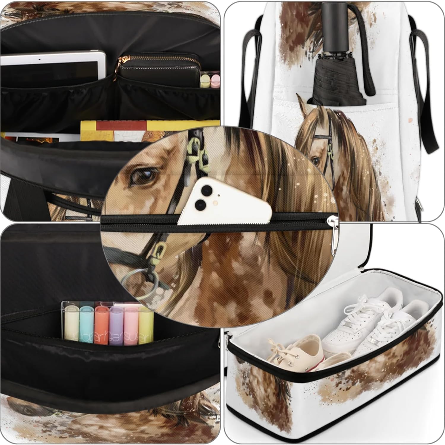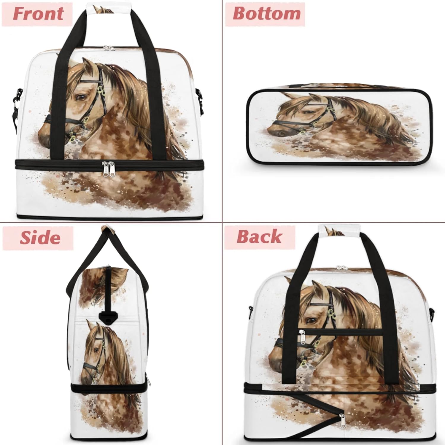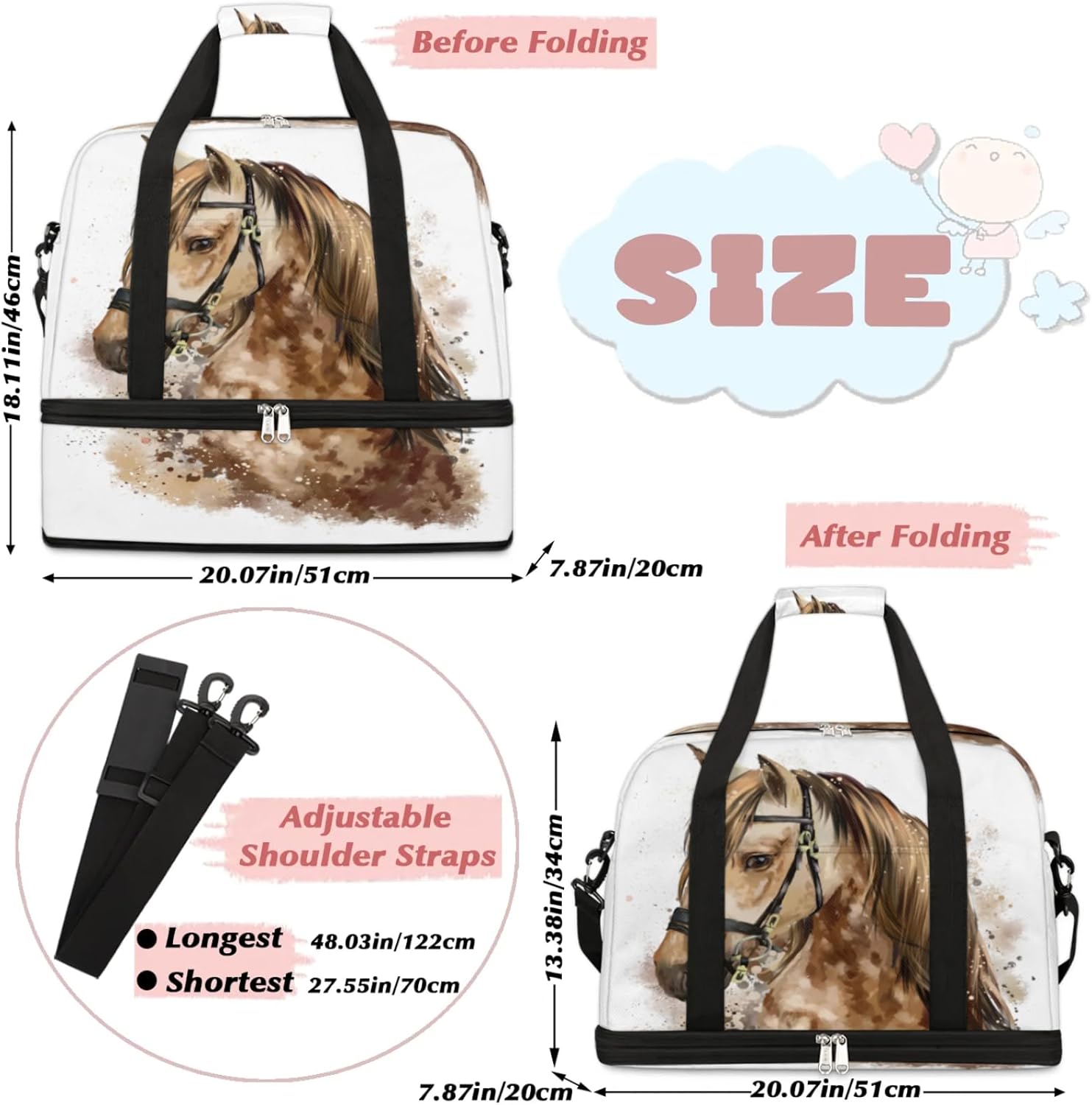 Horse Head Foldable Travel Duffel Bag, Expandable Sports Gym Bag with Shoes Compartment Weekender Overnight Totes Bags for Women Men