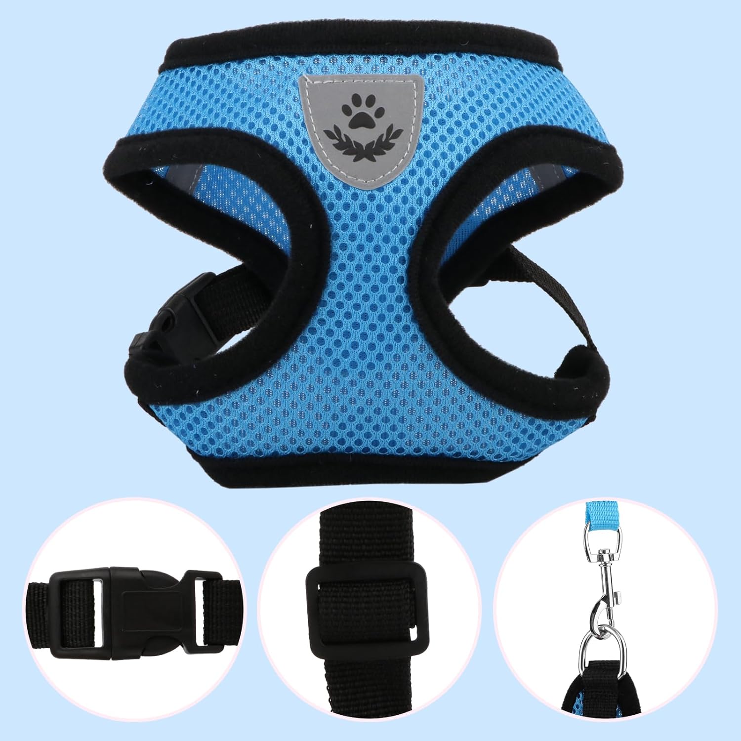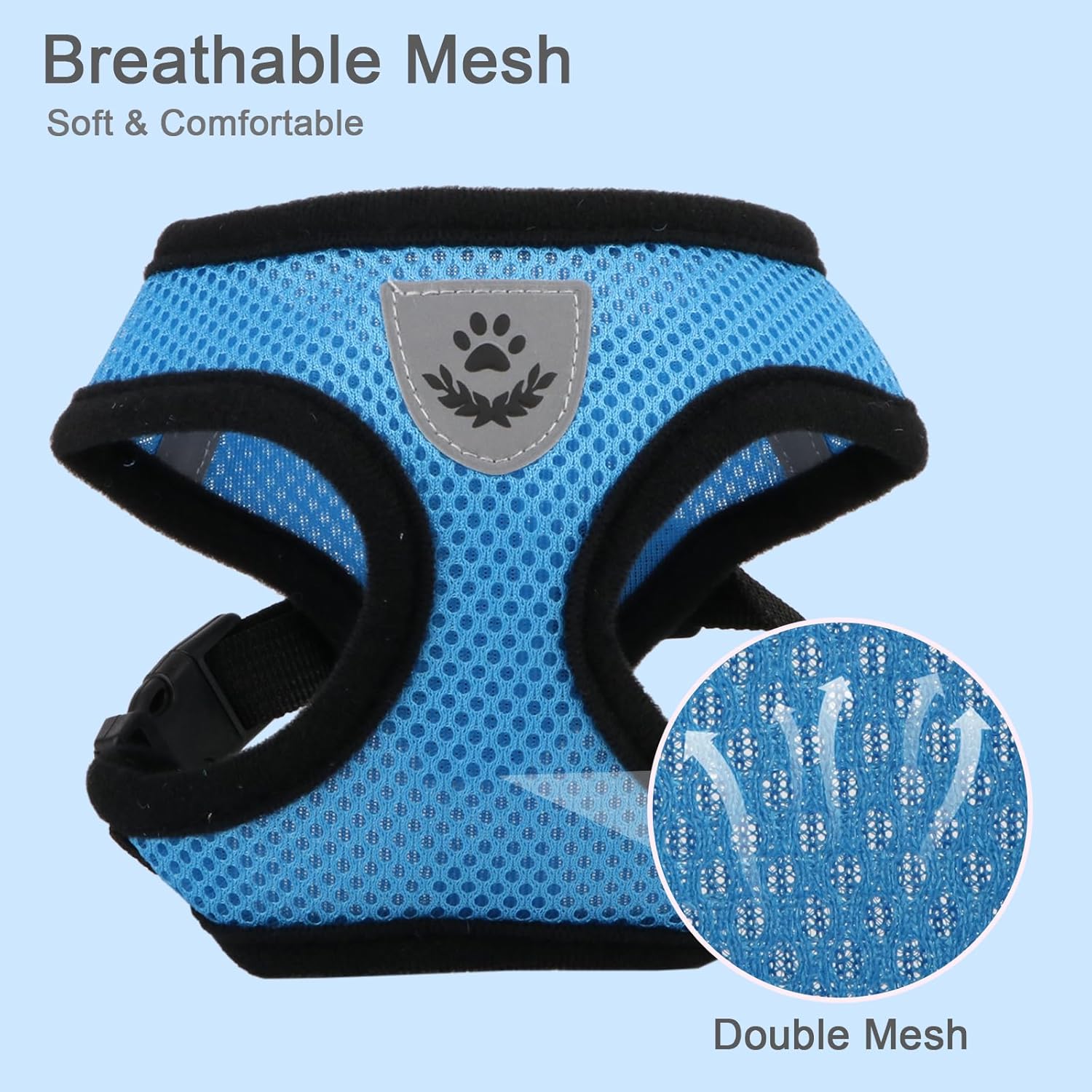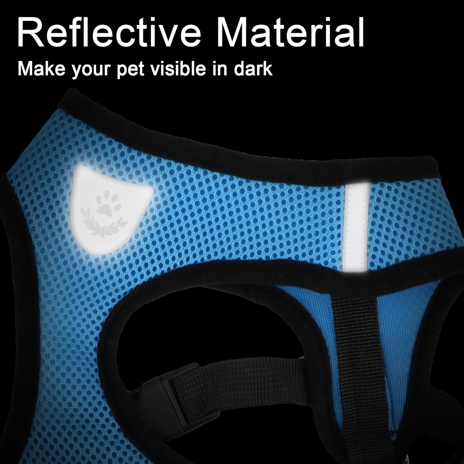 【REFLECTIVE MATERIAL】Made of reflective material, the harness makes your dog visible in dark, keep your dog’s safety. Soft and breathable material plus heavy padding makes your dog enjoys wearing this harness.