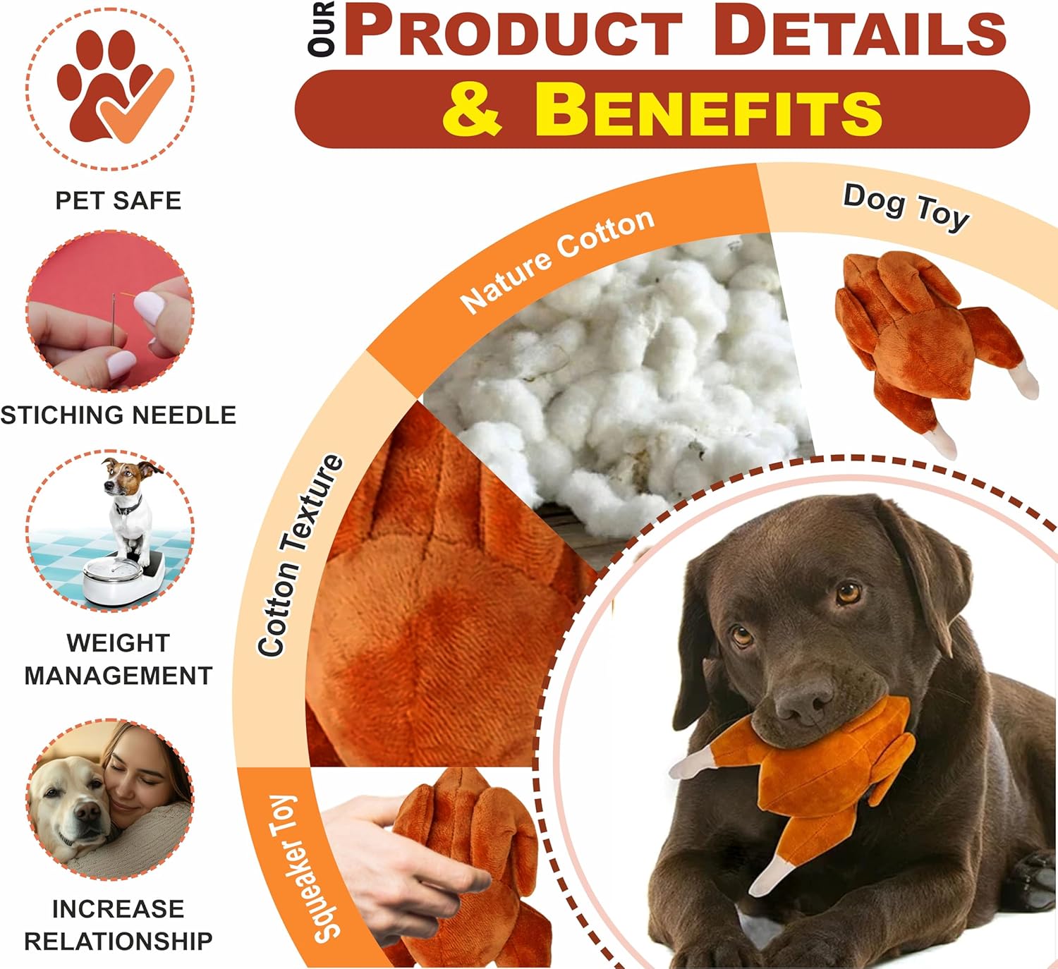 ✔️ Crafted with ultra-soft natural cotton and detailed stitching for durability, this squeaky turkey-shaped plush toy is designed to be both pet-safe and irresistibly engaging, helping promote healthy chewing habits, support weight management through interactive play, and strengthen the emotional bond between you and your dog—all while providing a comforting, textured surface that satisfies your pet’s instincts and ensures hours of safe, joyful entertainment indoors or outdoors.