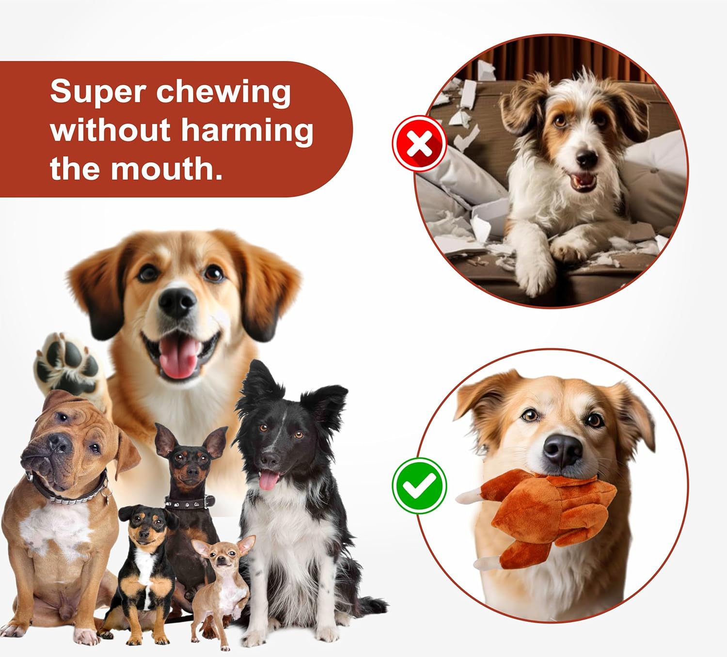 ✔️ Say goodbye to destructive chewing and hello to happy, healthy playtime—our soft yet durable toy is designed for super chewing without harming your dog’s mouth, making it the perfect solution for all breeds and sizes.