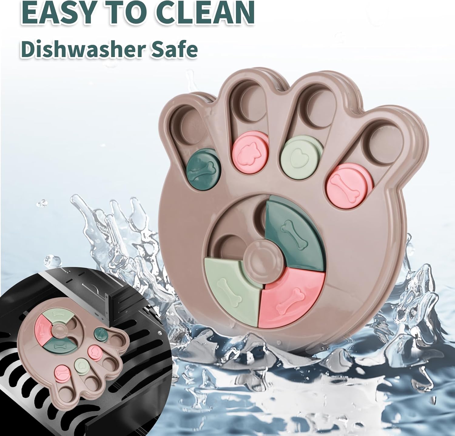 Small/Medium Breed Optimization – Engineered for dogs 8-50lbs (3.6-22.7kg). The 4mm-thick silicone base with 6 suction cups maintains 94% stability on smooth floors . Central 300g weighted core prevents tipping during play, while compact 10″x10″ size fits most pet feeding areas.