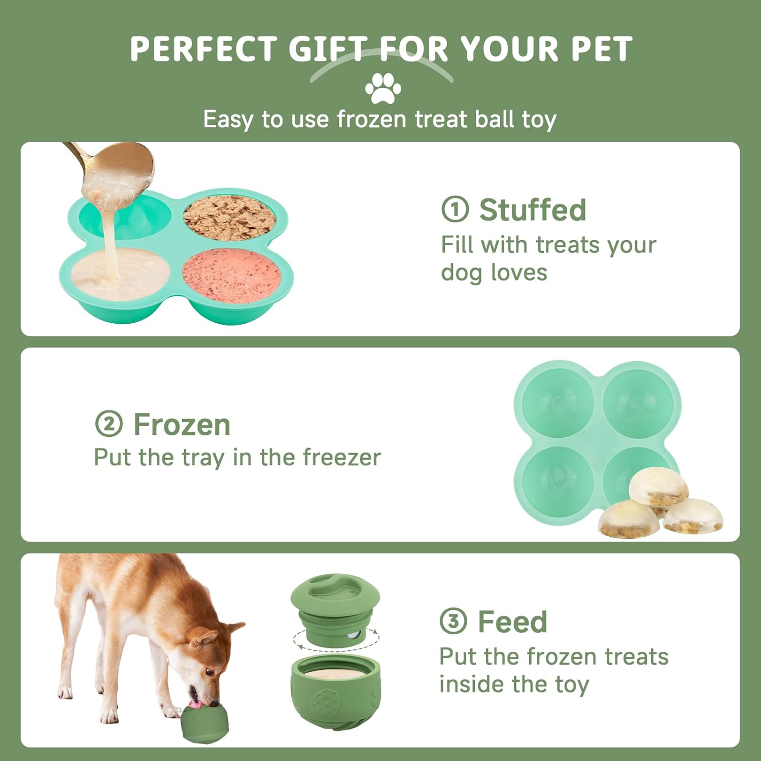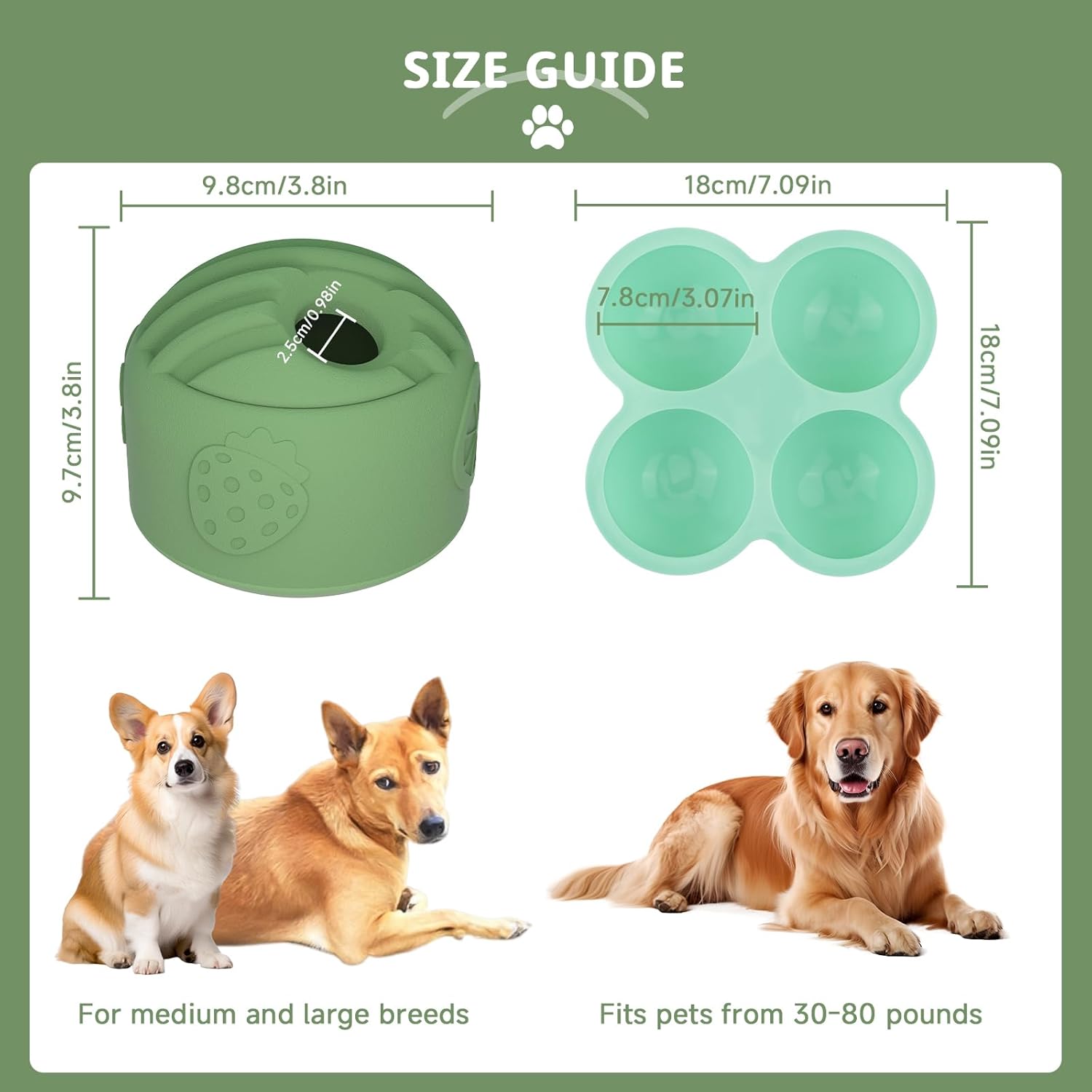 【Frozen Treat Toys】Simply fill the dog treat tray with your dog’s favorite food or treats, place it in the freezer, and place the frozen treats in the toy for delicious and long-lasting playtime. Large capacity 4 hole tray allows for different combinations of treats