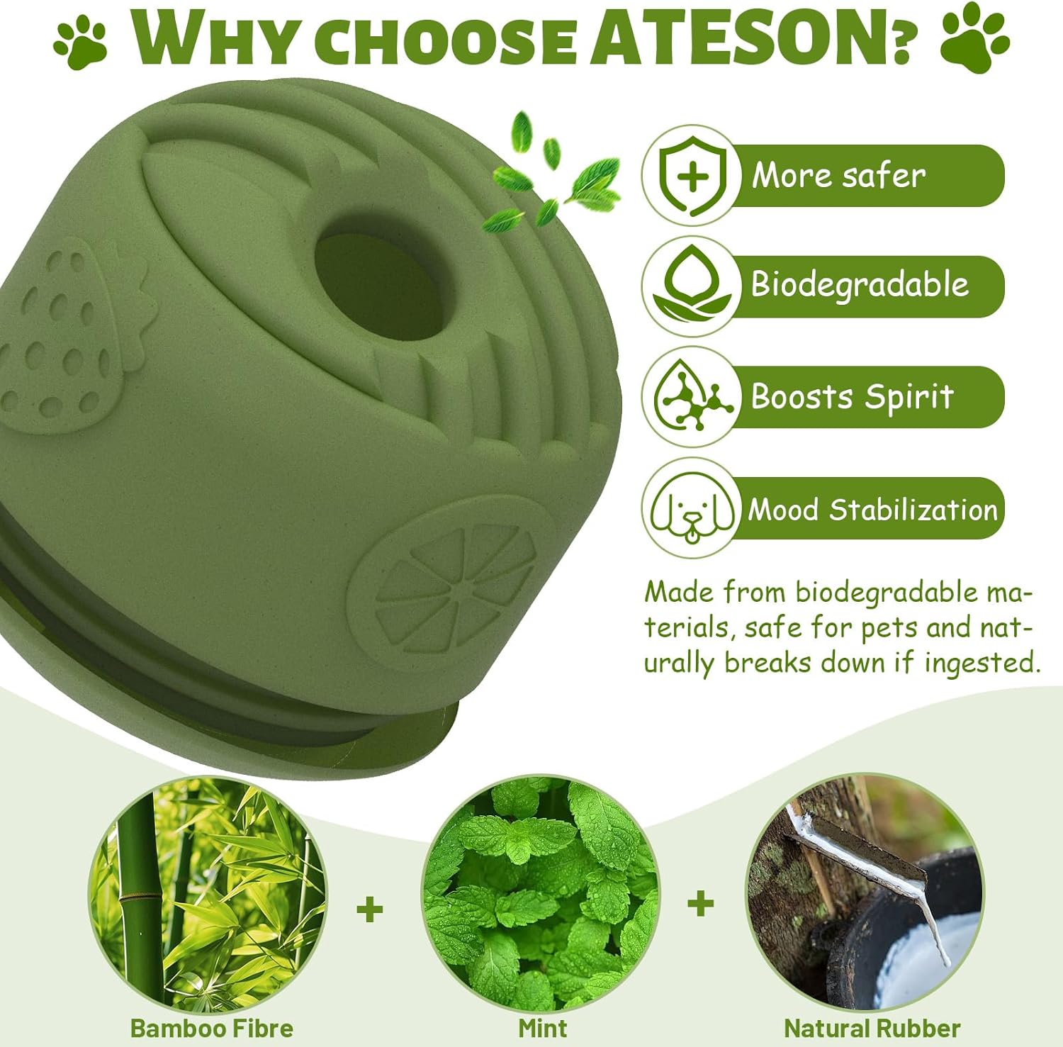 Eco-Friendly Mint Dog Toys —— Made with natural rubber, bamboo fiber, and mint, this dog puzzle toy is both safe and eco-friendly. The mint scent attracts pets, while the biodegradable materials ensure that if accidentally ingested, it can safely break down and pass through their system. Perfect for dogs that love to chew.