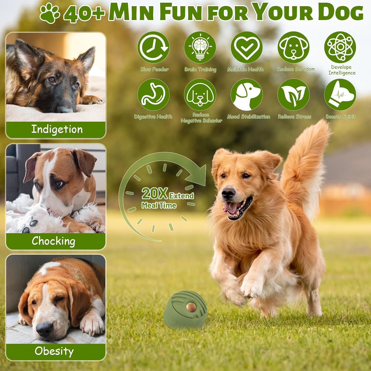 Slow Feeder Toy for Dogs ——- 40+ Minutes of engaging fun & mental stimulation for dog. Helps reduce boredom, anxiety, and negative behaviors while promoting healthy digestion and energy consumption. Encourages slower eating, mental development, and emotional balance for a happier, healthier pet.