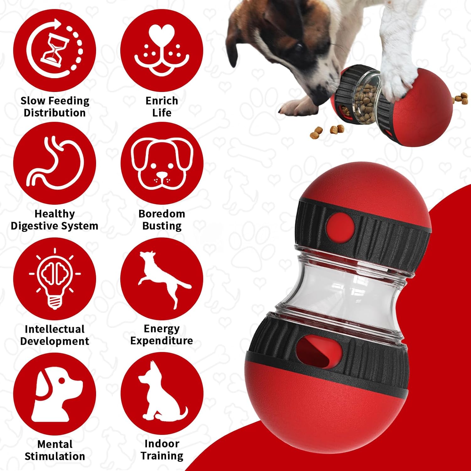 Interactive Dog Treat Dispenser and Puzzle Toys, Dog Slow Food Feeder Rolling Ball for Reducing Boredom and IQ Training Toys, Red