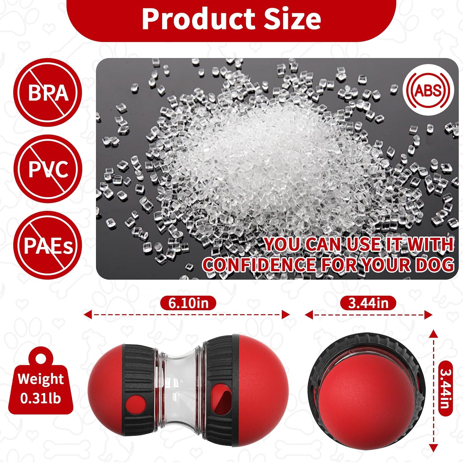 Safe & Durable Material: This dog treat-dispensing toy is made of food-grade ABS material, ensuring that pets can eat without any worries. The shell is made of durable, non-toxic, and safe material, suitable for all dogs.