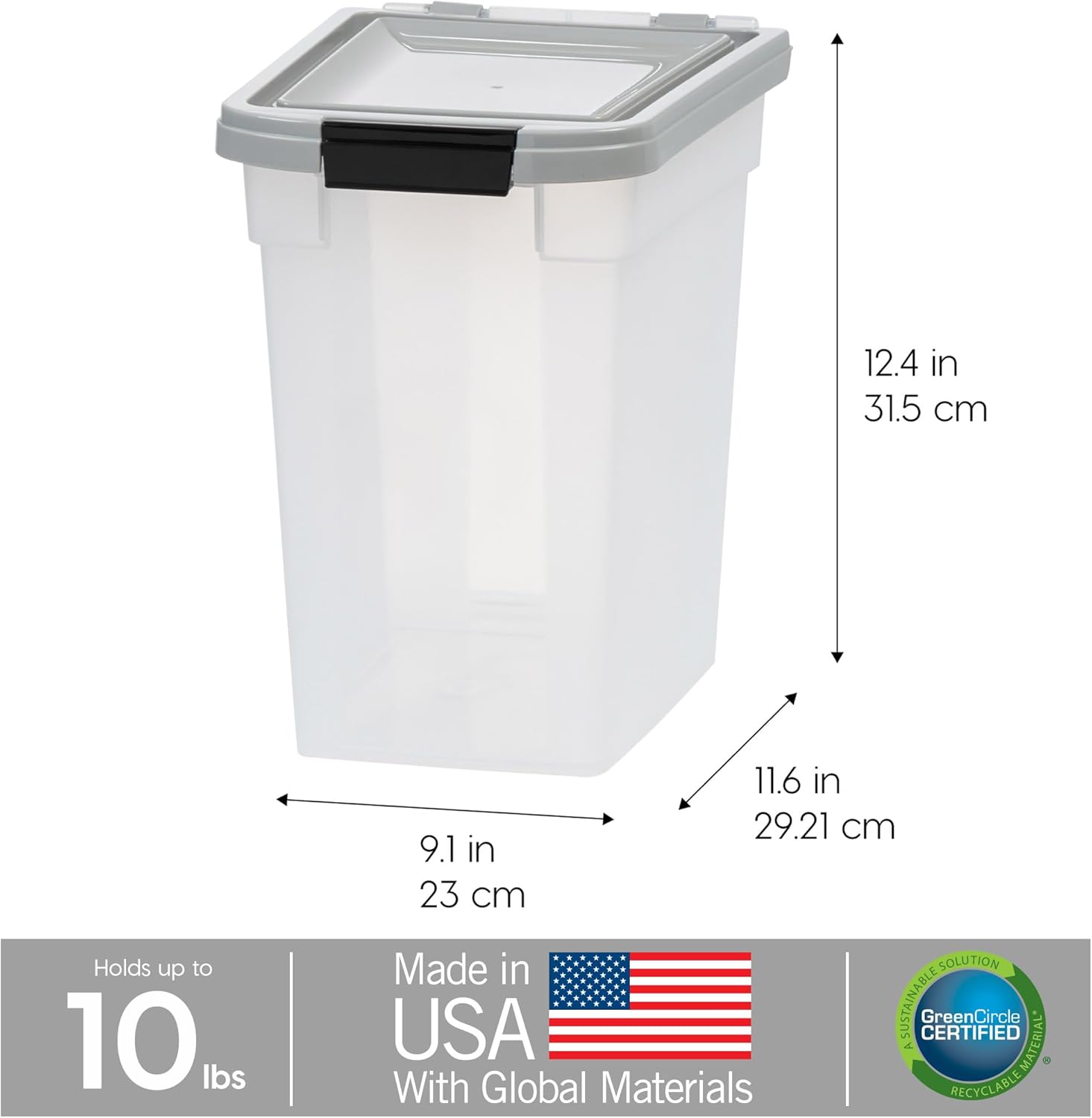 IRIS USA Airtight Dog Food Storage Container, WeatherPro, Up to 10 lbs, for Dog Cat Bird and Other Pet Food Storage Bin, Keep Fresh, Translucent Body, Made in USA, Clear/Gray