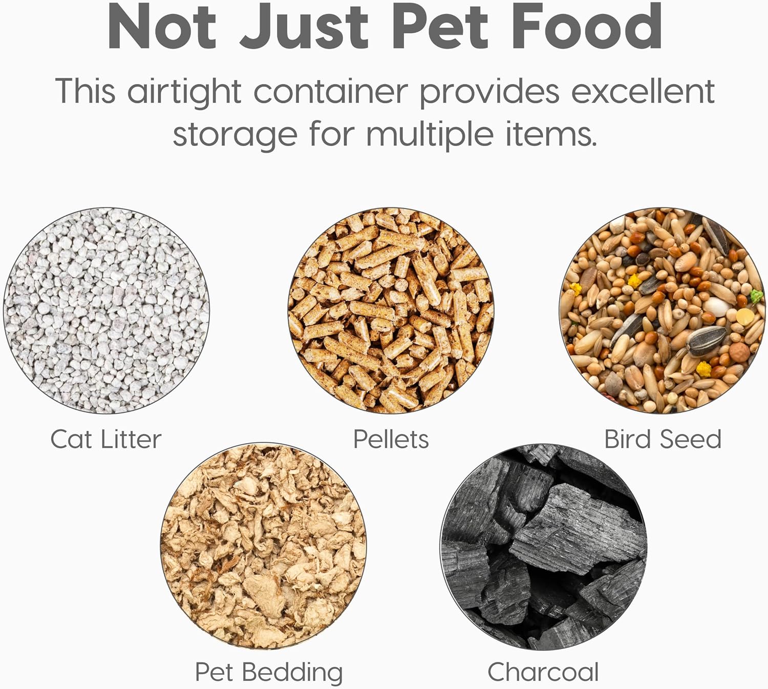 FOOD FOR ALL: Store your cute family member’s dry foods into sealable and portable pet food container. This airtight food storage container is great for storing 10 Lbs of dry food (the capacity will depend on what kind of pet food you store)