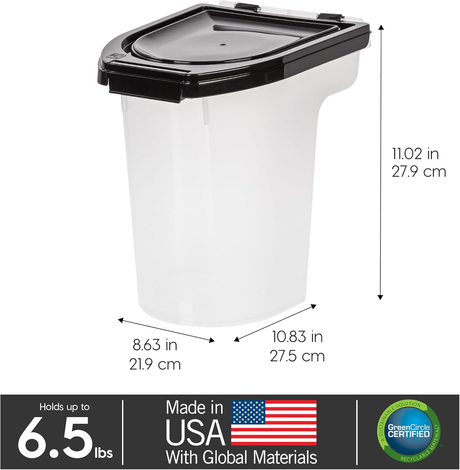 IRIS USA WeatherPro Airtight Pet Food Storage Container, Up to 6.5 lbs, Treat Box for Dog Cat and Bird Food, Keep Fresh, Translucent Body, Easy Clean Up, BPA free, Clear/Black