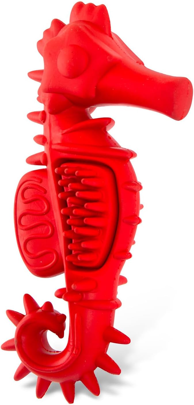FUN SEAHORSE SHAPE FOR ENGAGING PLAY – Designed in a playful red seahorse shape that encourages chewing and interactive play for dogs that enjoy unique textures and designs.
