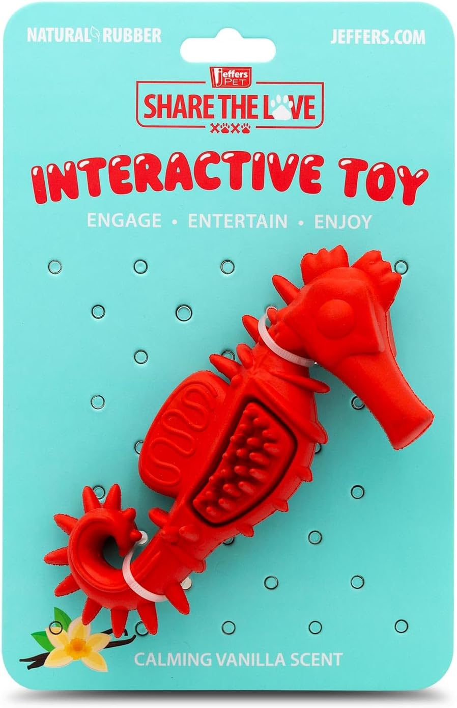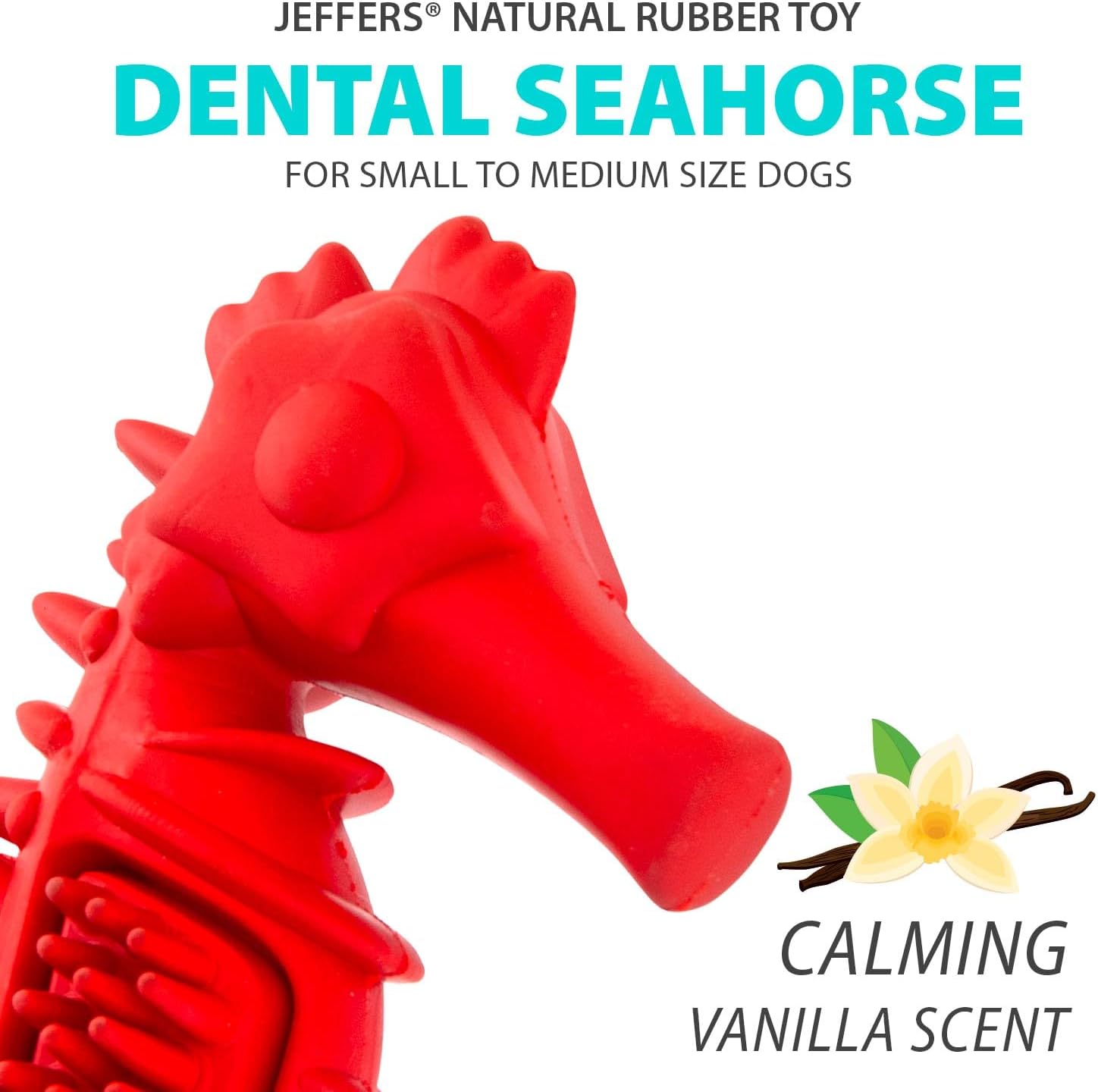 Jeffers Pet Natural Rubber Dog Chew Toy – Red Seahorse, Small – Vanilla Scent, Durable, Non-Toxic, Dishwasher Safe, Interactive Fetch & Tug Toy – Perfect for Training at Home