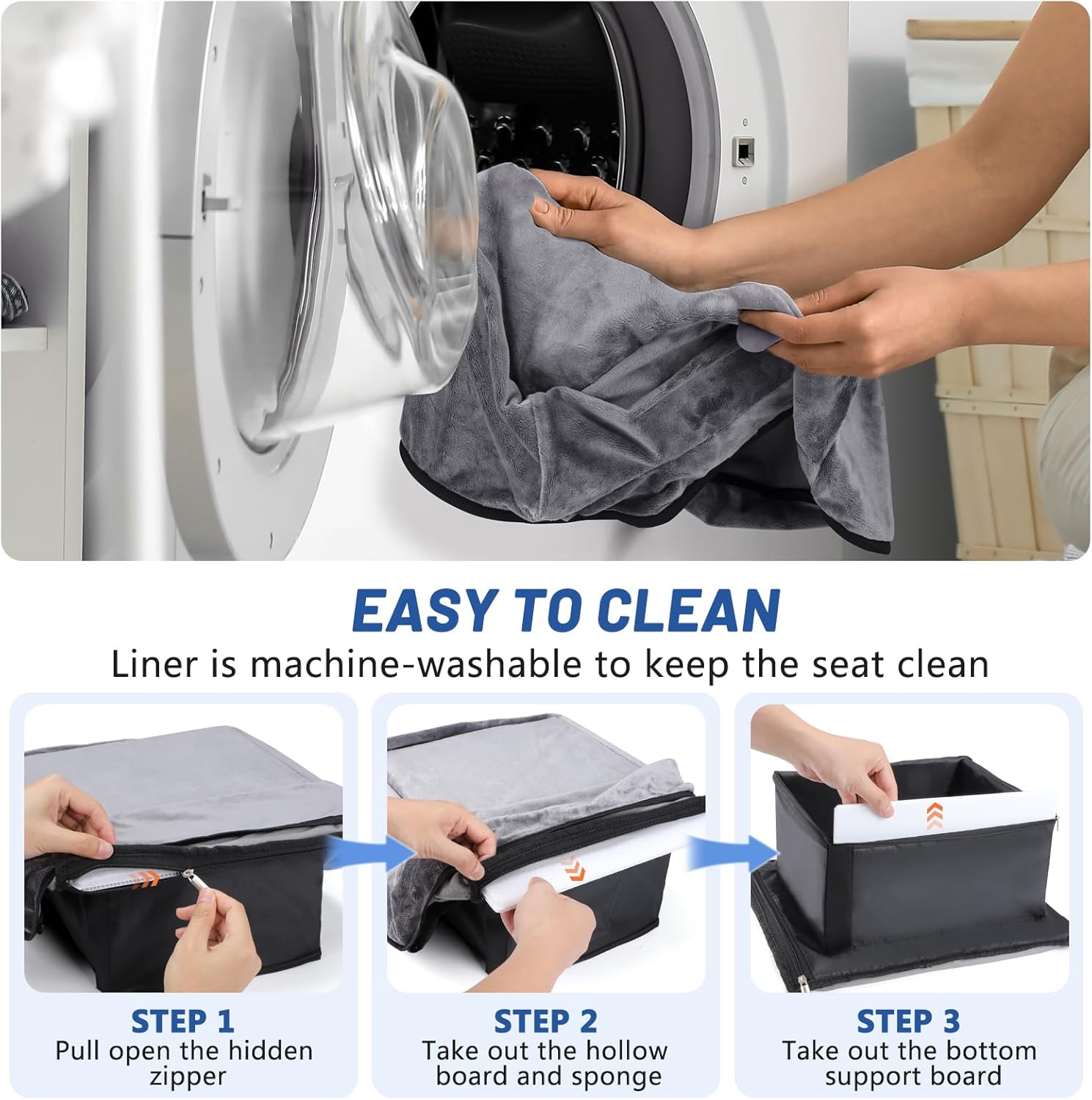 [Comfort and Easy to Clean] Our dog car seat is made from high-quality Oxford fabric and features a removable plush liner with a soft-pillow design. Pets can rest their heads on the soft pillow to alleviate nervousness or carsickness, ensuring maximum comfort during rides. The removable, machine-washable liner can be machine washed directly to keep the seat clean.