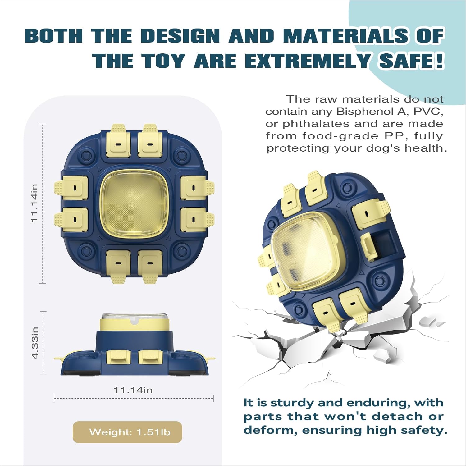 The product is made from BPA-free, PVC-free, and phthalate-free materials, using food-grade PP for complete protection of your dog’s health. You can confidently let your pet use it. The toy is chew-resistant, scratch-proof, sturdy, enduring, and will not deform, ensuring maximum safety.