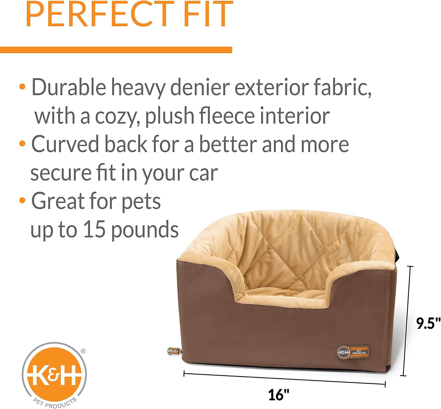 Distraction free driving is a must for safety. The K&H Pet Products Hangin’ Bucket Booster Dog Car Seat elevates your small pet in the front seat for a clear and comfortable view outside; while keeping them in a secure area for safe distraction free driving. This Bucket Booster holds pets up to 15 lbs. and includes a strap to securely fasten to the seatbelt in the car. The Hanging Bucket Booster has a durable heavy-denier fabric exterior and contrasting plush quilted fleece interior for your pet’s comfort. Easy to install in seconds making it quick and easy to hit the road. The elevated car seat features a removable cover for easy machine washable care. Designed by K&H with OVER 20 years of experience in creating safe, innovative, quality products for pets; one-year limited warranty.