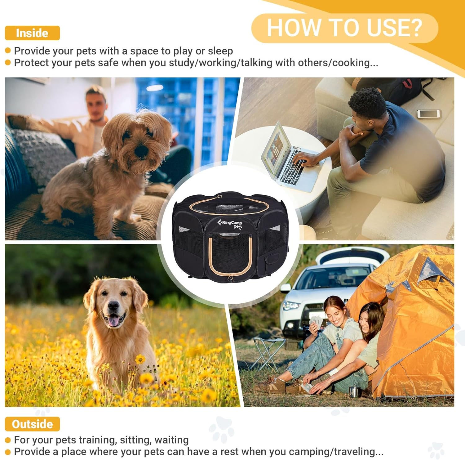 KingCamp Playpen is designed to provide a secure enclosed area for pets to play or lounge in whether inside or outdoor excursions.