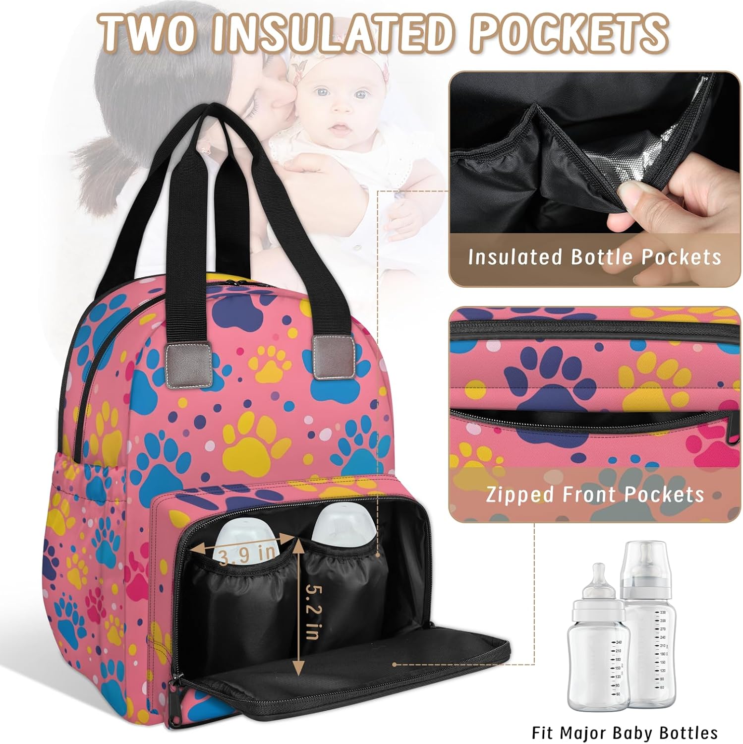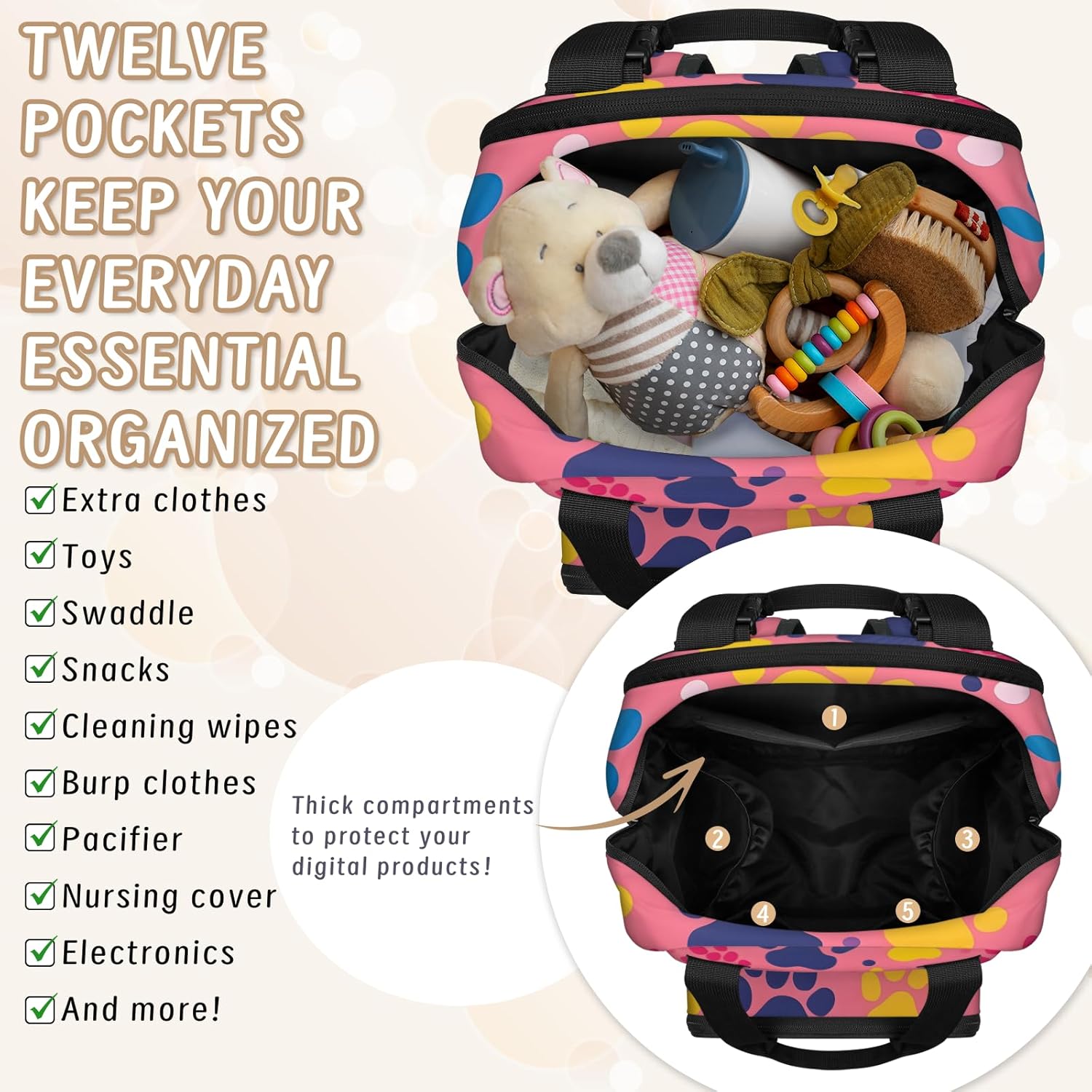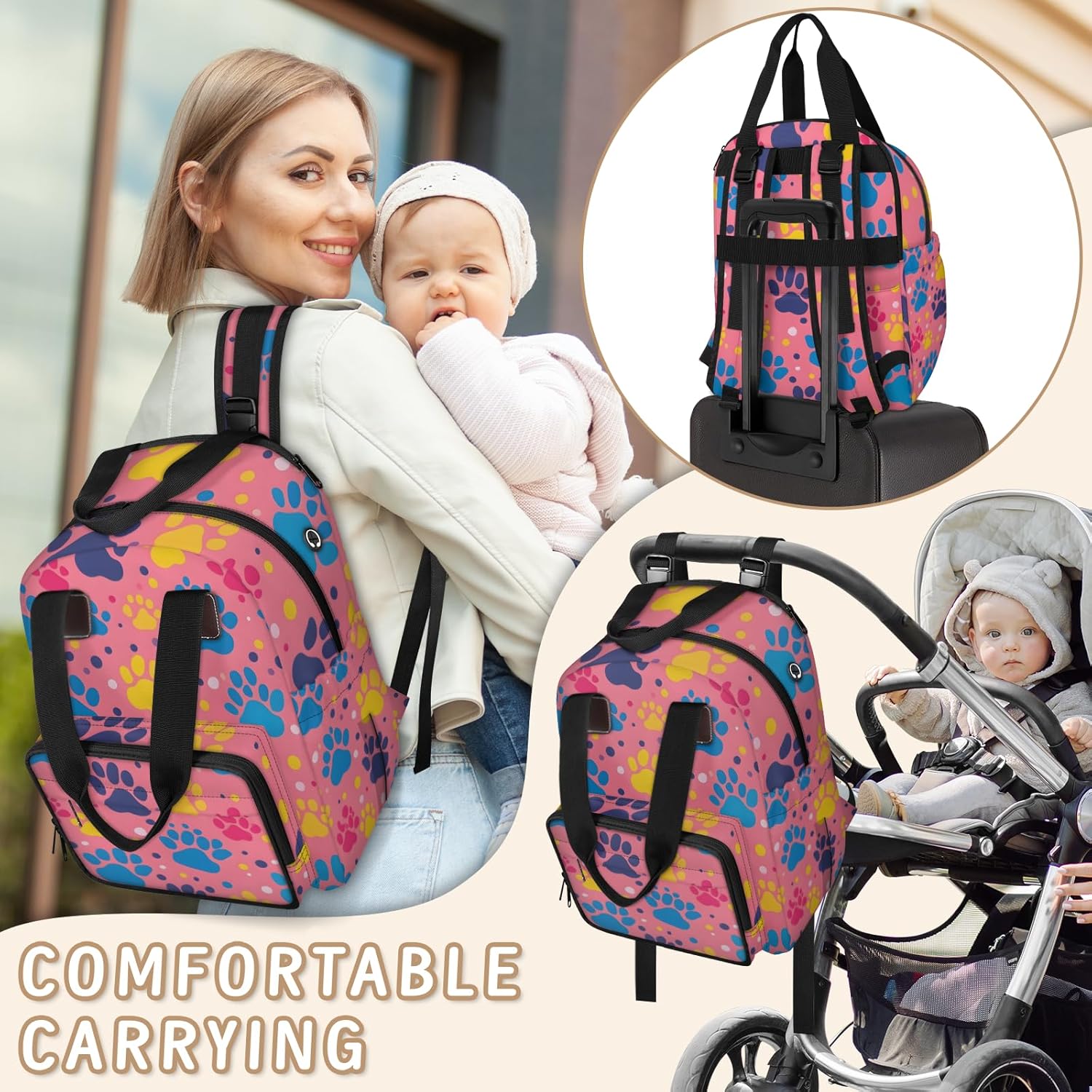 KOBLEN Dog Paw Prints Diaper Bag Backpack Baby Essentials Travel Tote Bag with Insulated Pockets Multi-functional Diaper Bags Organizer Bag for Women Men