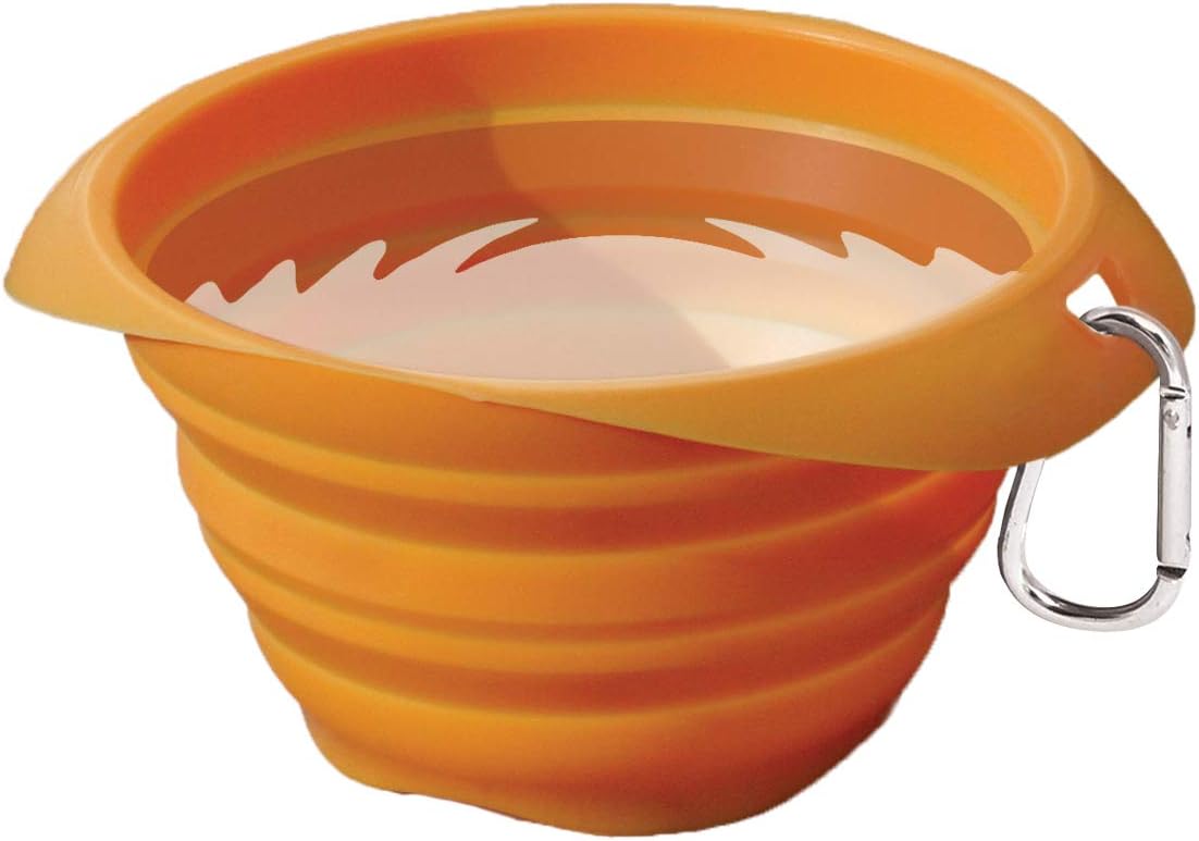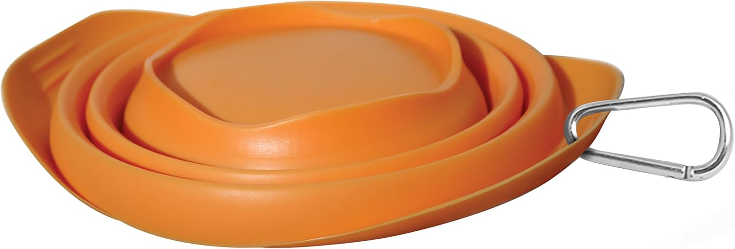 Kurgo Collaps-A-Bowl for Dogs, Collapsible Travel Dog Bowl, Pet Food & Hiking Water Bowl, Food Grade Bowl for Dogs, Travel Accessories for Pets, Includes Carabiner (24 oz, Orange)