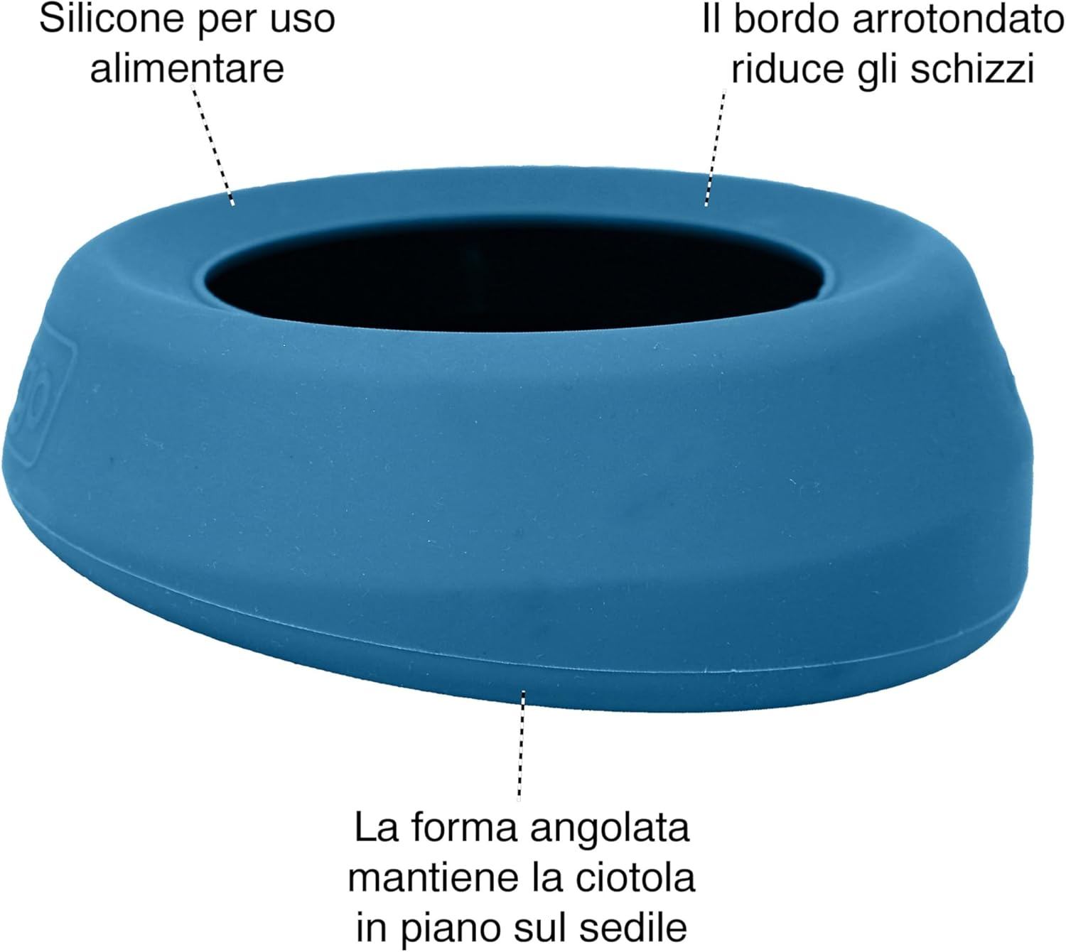 No spill dog bowl: tapered lip helps reduce splashing while travelling and keeps kibble/water off car floor unique wedge design ensures that pet water bowl lays flat on car seat, PVC and BPA free