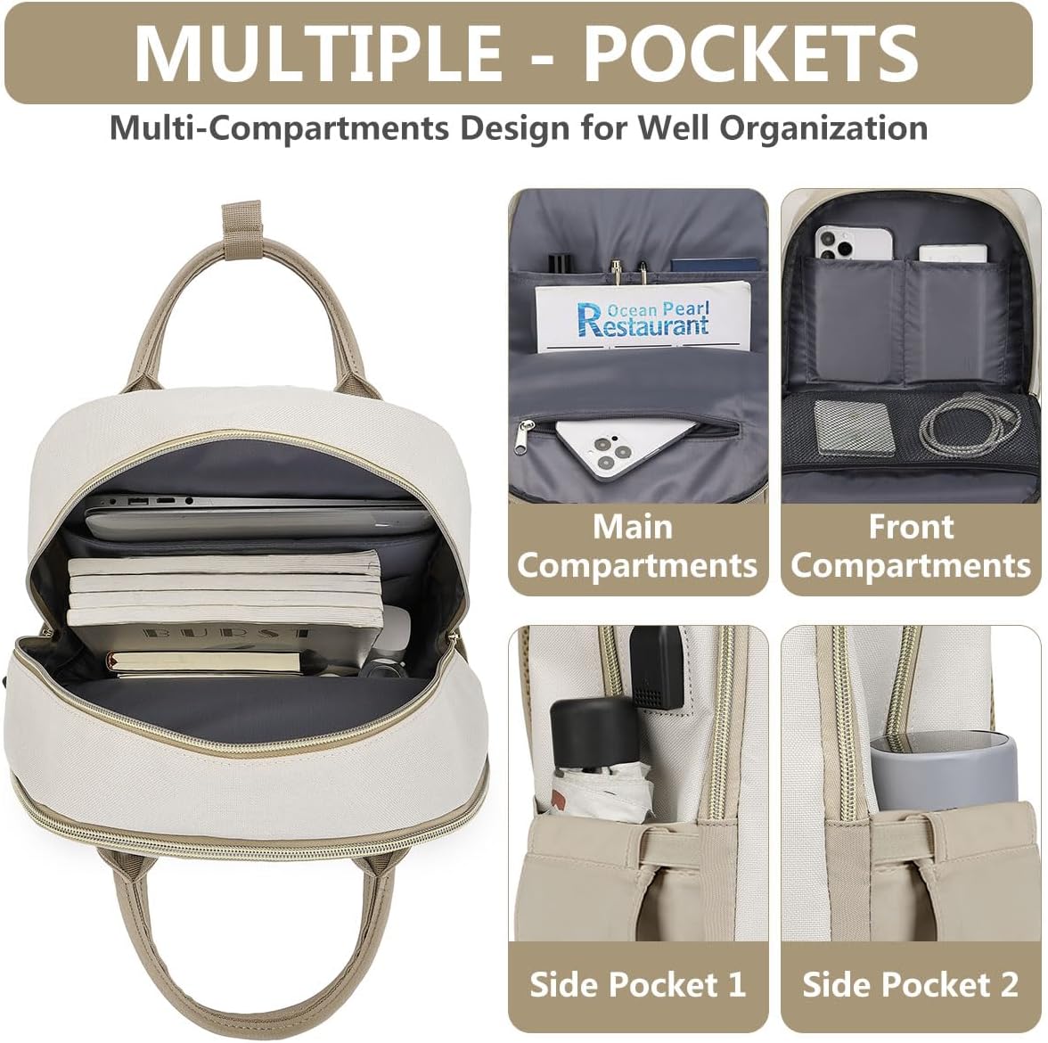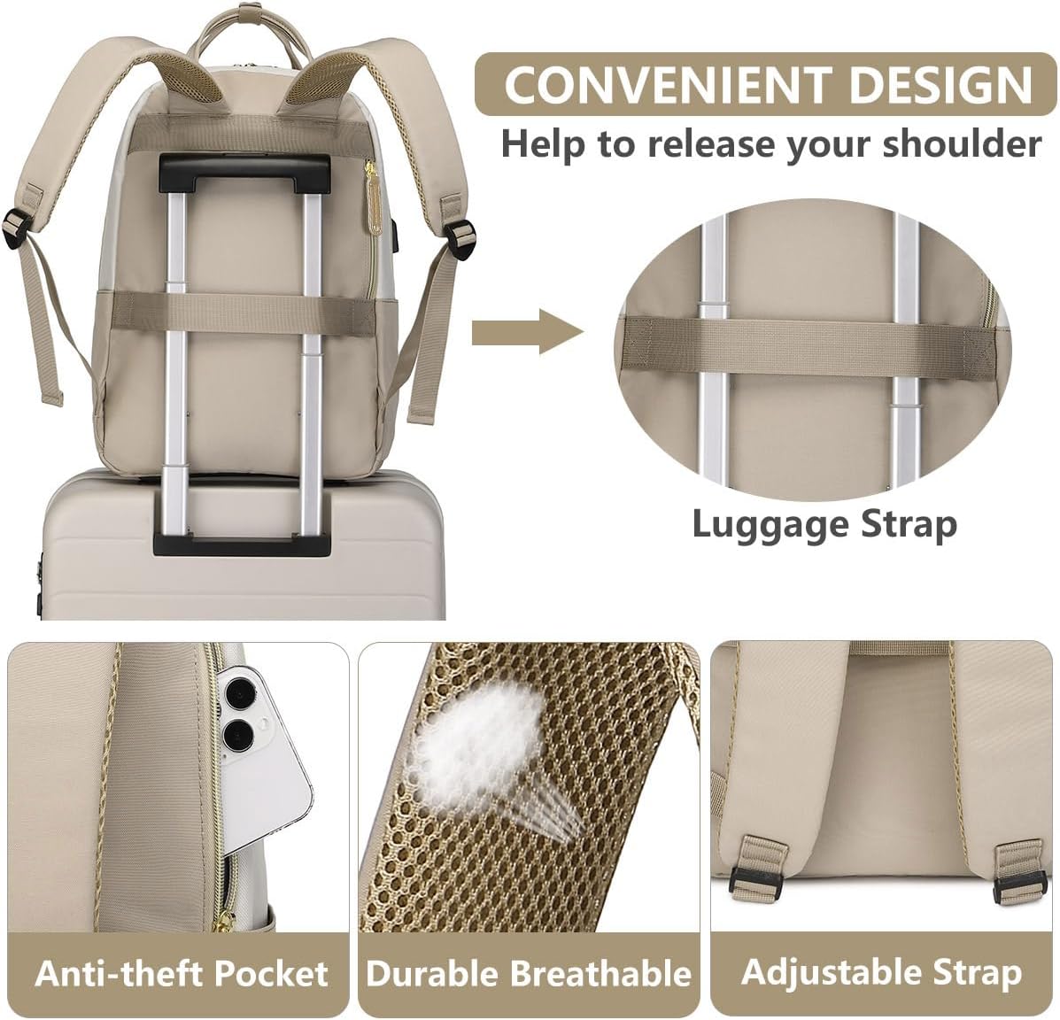 laptop backpack for Women – 15.6 inch Work Bags Travel Backpack with USB Charger College Bookbag Waterproof Business Computer Backpack Anti-theft Casual Backpacks for Nurse Teacher khaki