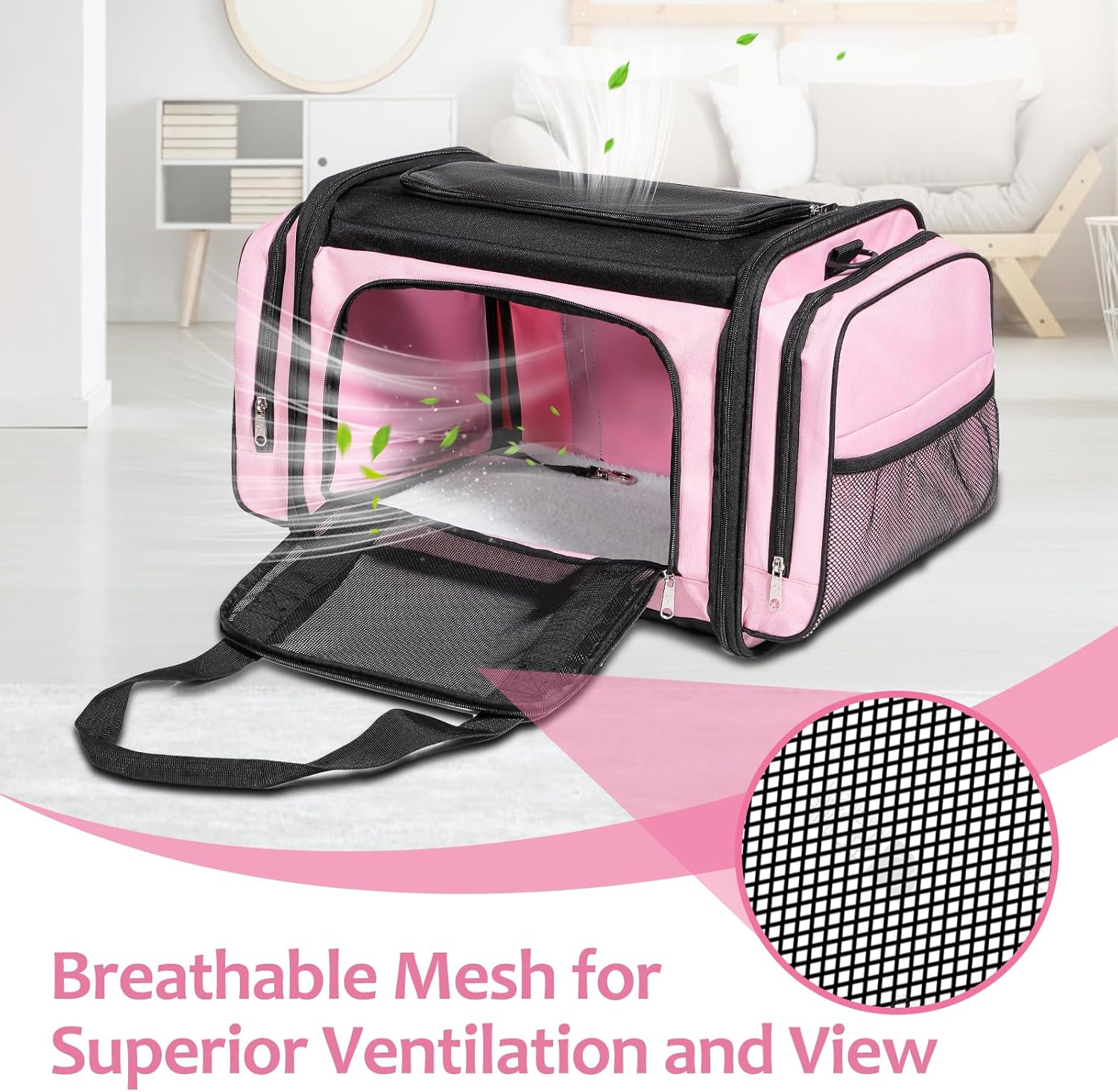 Large Cat Carrier, Pet Carrier, Dog Carrier for Small Dogs, Cat Carrier Soft, Collapsible Large Pet Carrier for Traveling Indoor and Outdoor Uses – Pink 20″x13″x13″