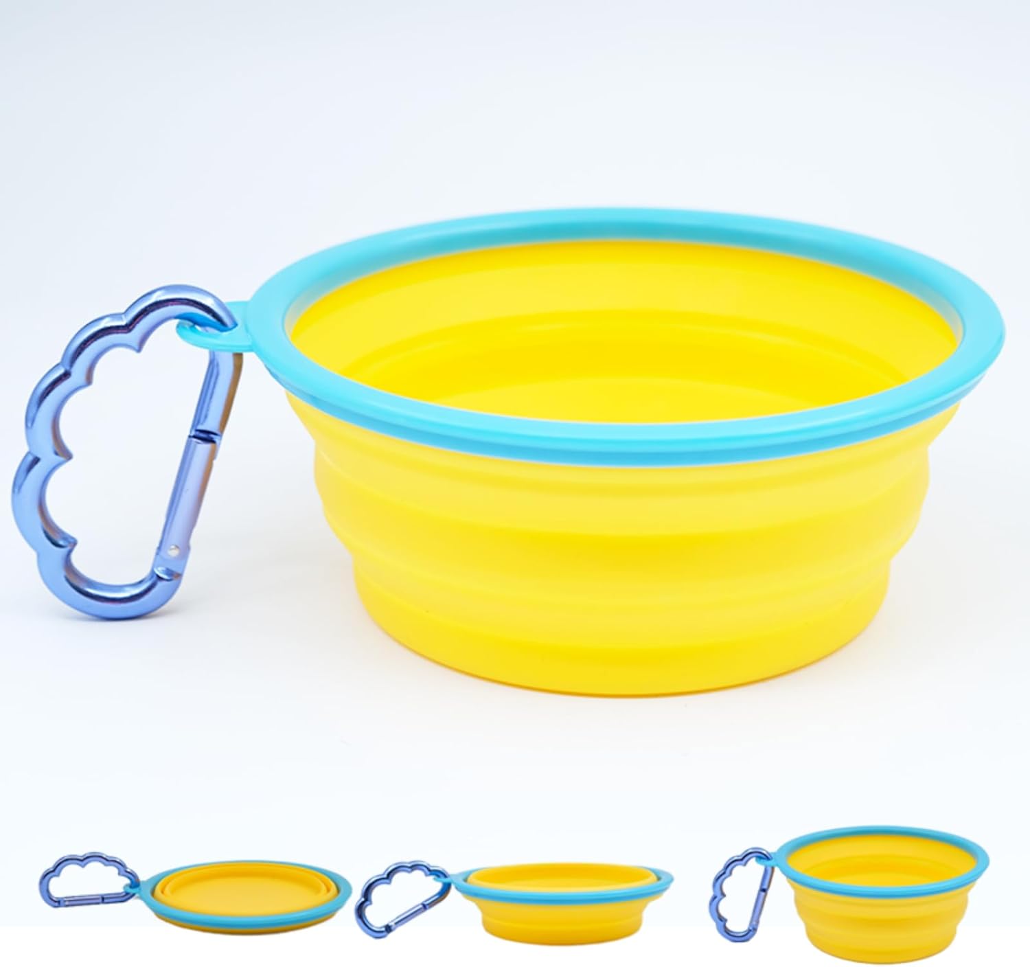 【Easy to Use and Carry】- This Collapsible Dog Bowl is made of high-quality silicone material, which is flexible and durable. It can be easily folded and stored in a small space, making it perfect for travel or outdoor activities. The included carabiners allow for easy attachment to a leash or backpack, providing convenience for both you and your furry friend.