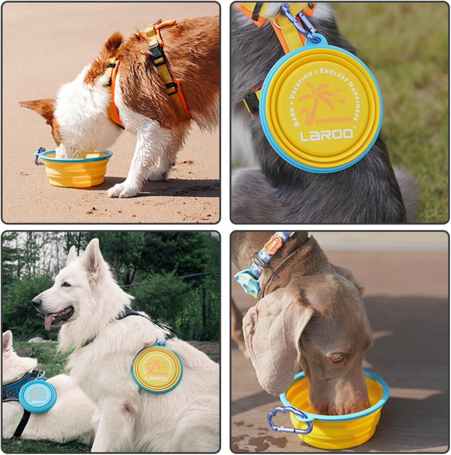 LaRoo Collapsible Dog Bowls, Large Portable Foldable Travel Dog Bowls with Clasp, BPA-Free Non-Toxic Water & Food Bowl for Large/Medium Dogs, Outdoors in Summer Hiking, Walking, Traveling (Yellow)