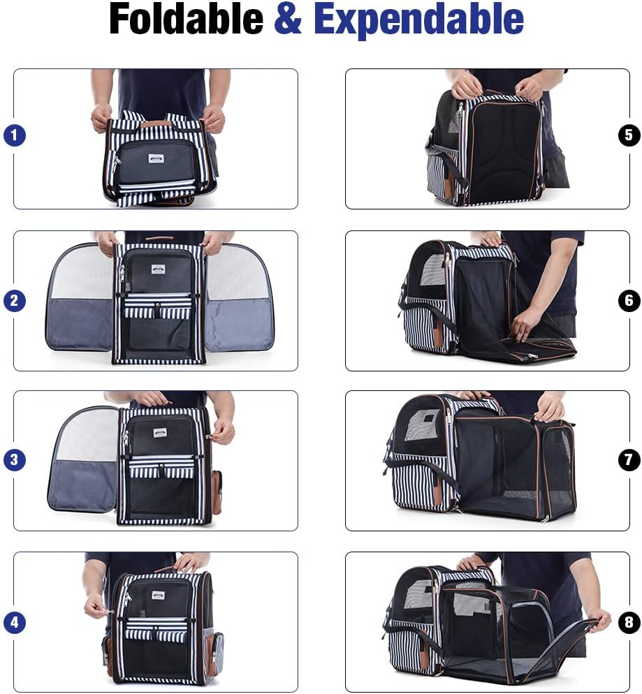 Lekebobor Large Cat Backpack Carrier Expandable Pet Carrier Backpack for Small Dogs Medium Cats Fit Up to 18 Lbs, Dog Carrier Backpack,Puppy Backpack Carrier, Blue Striped