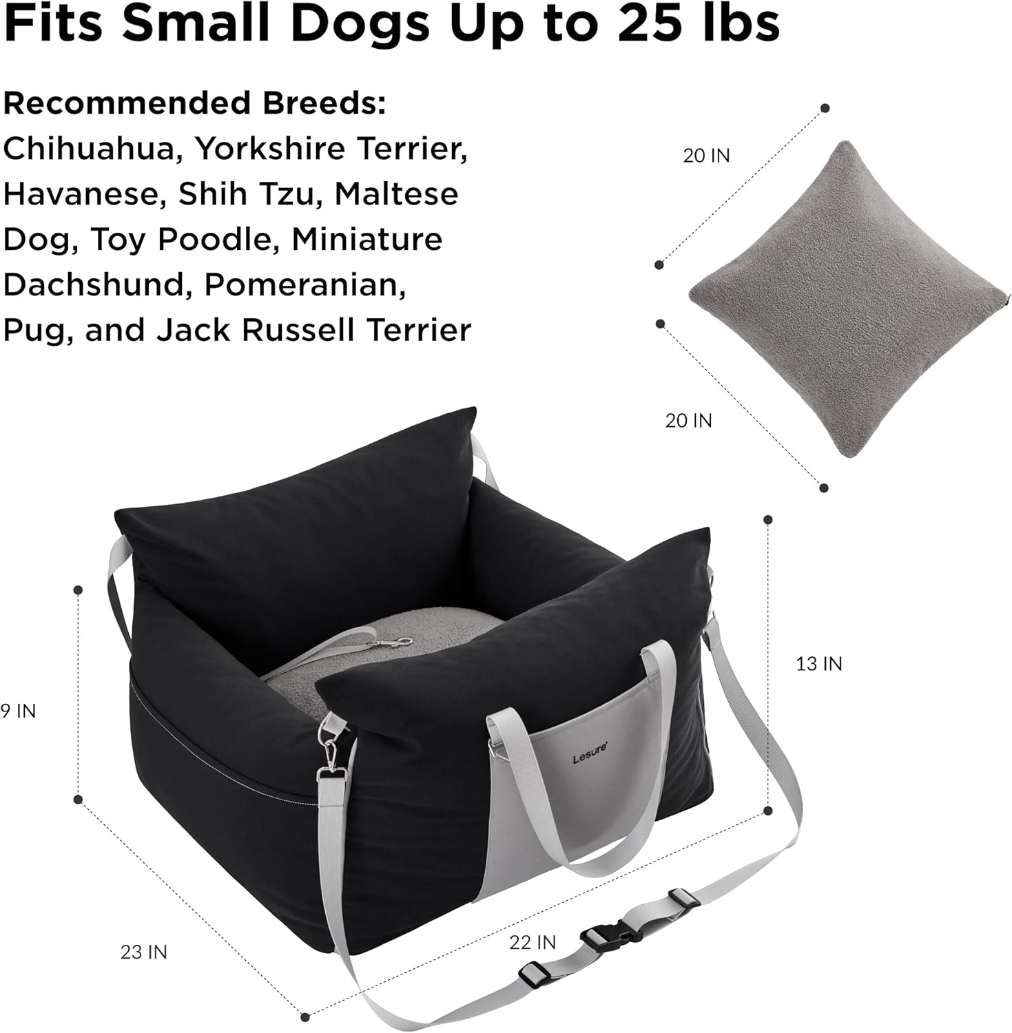 Lesure Small Dog Car Seat for Small Dogs – Waterproof Dog Booster Car Seat with Storage Pockets, Clip-On Safety Leash and Thickened Memory Foam Filling, Pet Carseat Puppy Travel Carrier Bed, Black