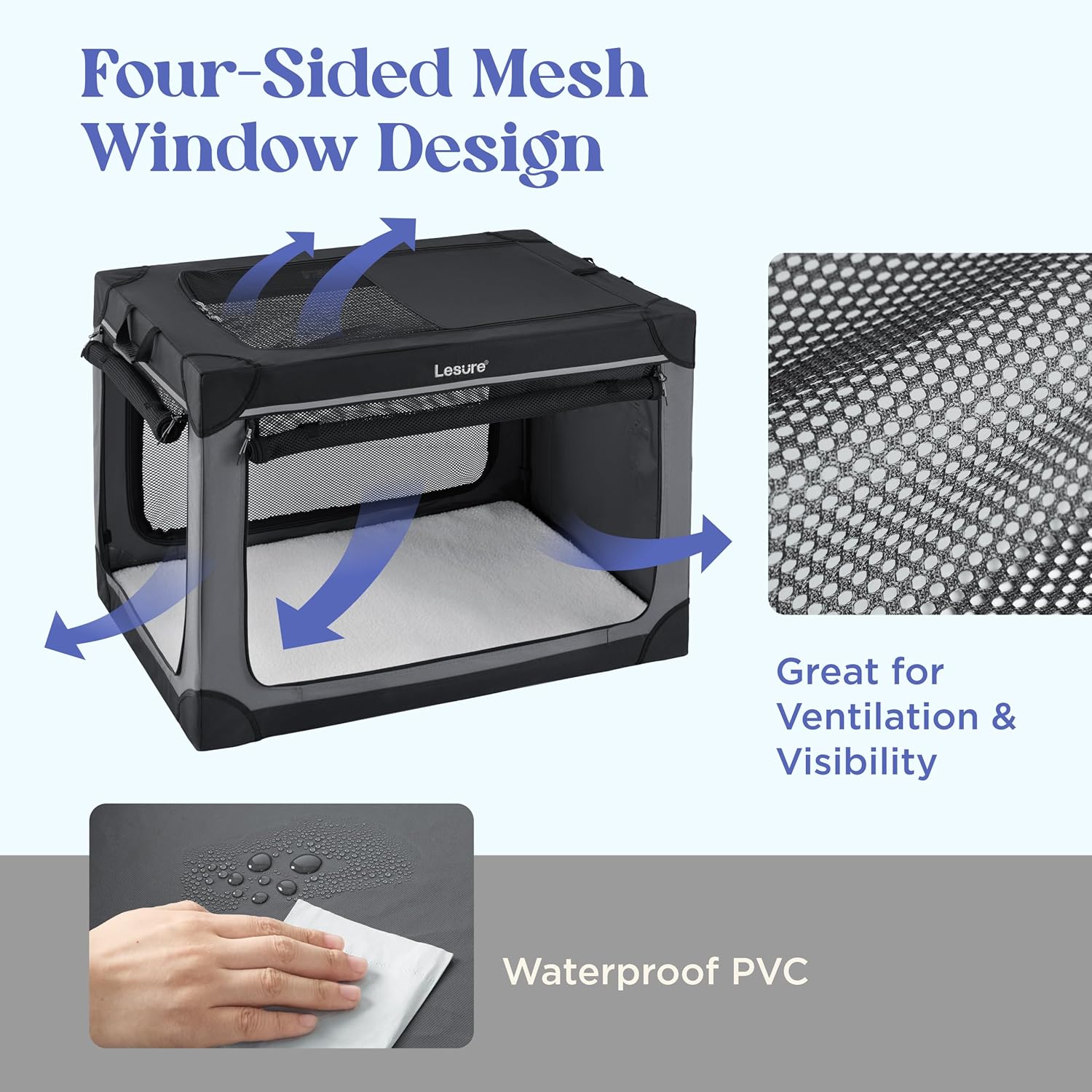 Lesure Soft Collapsible Dog Crate – 42 Inch Portable Travel Crate for Extra Large Dogs Indoor & Outdoor, 4-Door Foldable Pet Kennel with Mesh Windows, Blue