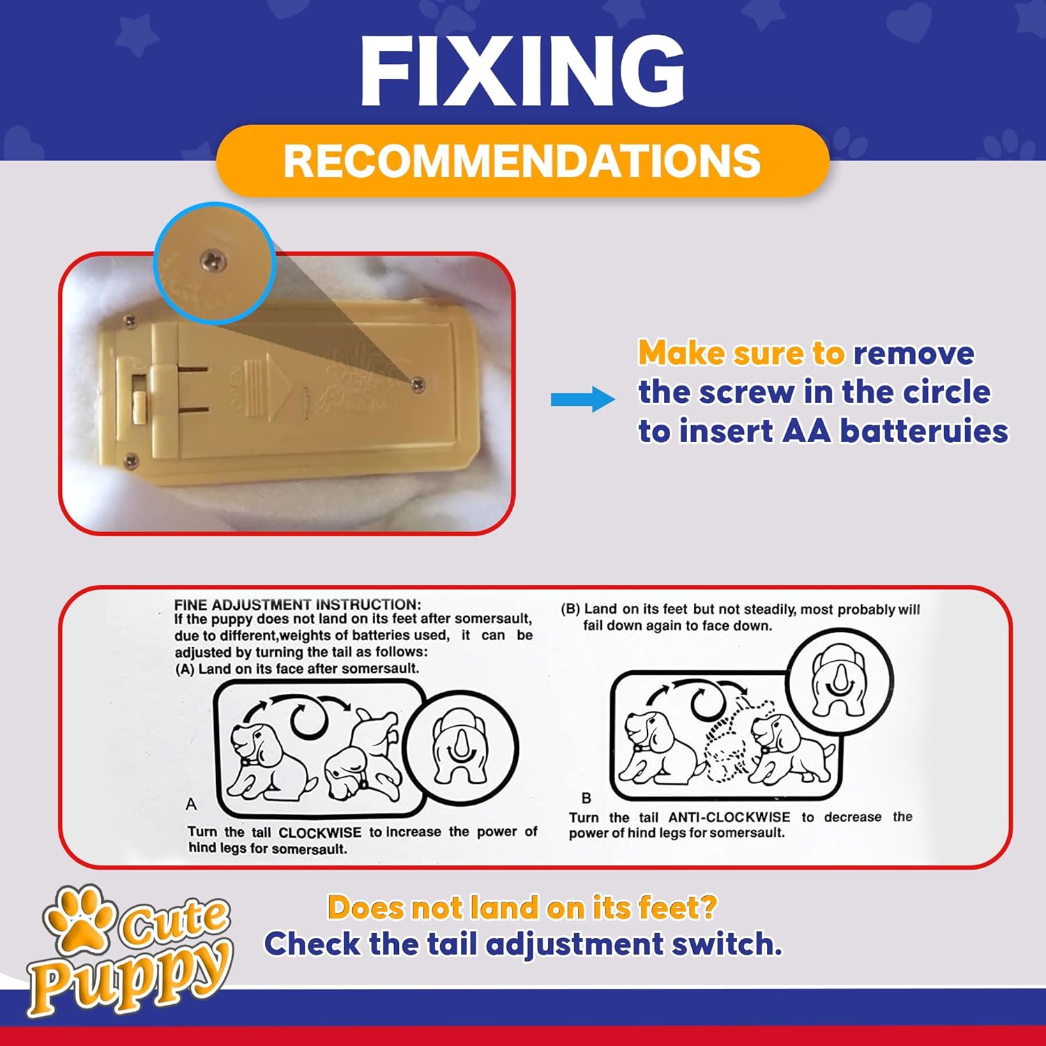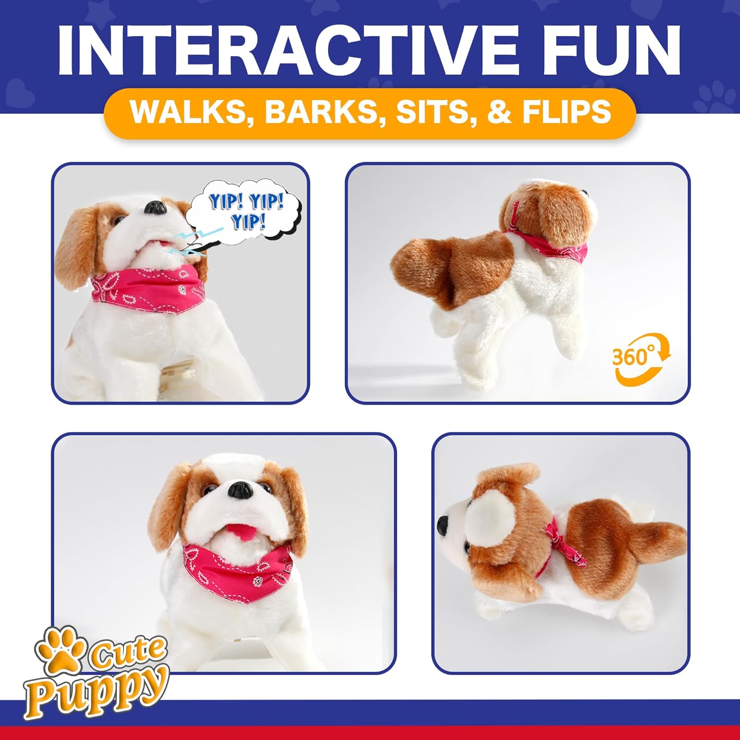 FLIPPING PUPPY: A battery-operated electronic pet that walks, barks, sits, and flips, this flipping dog simulates a joyful and realistic pet experience.