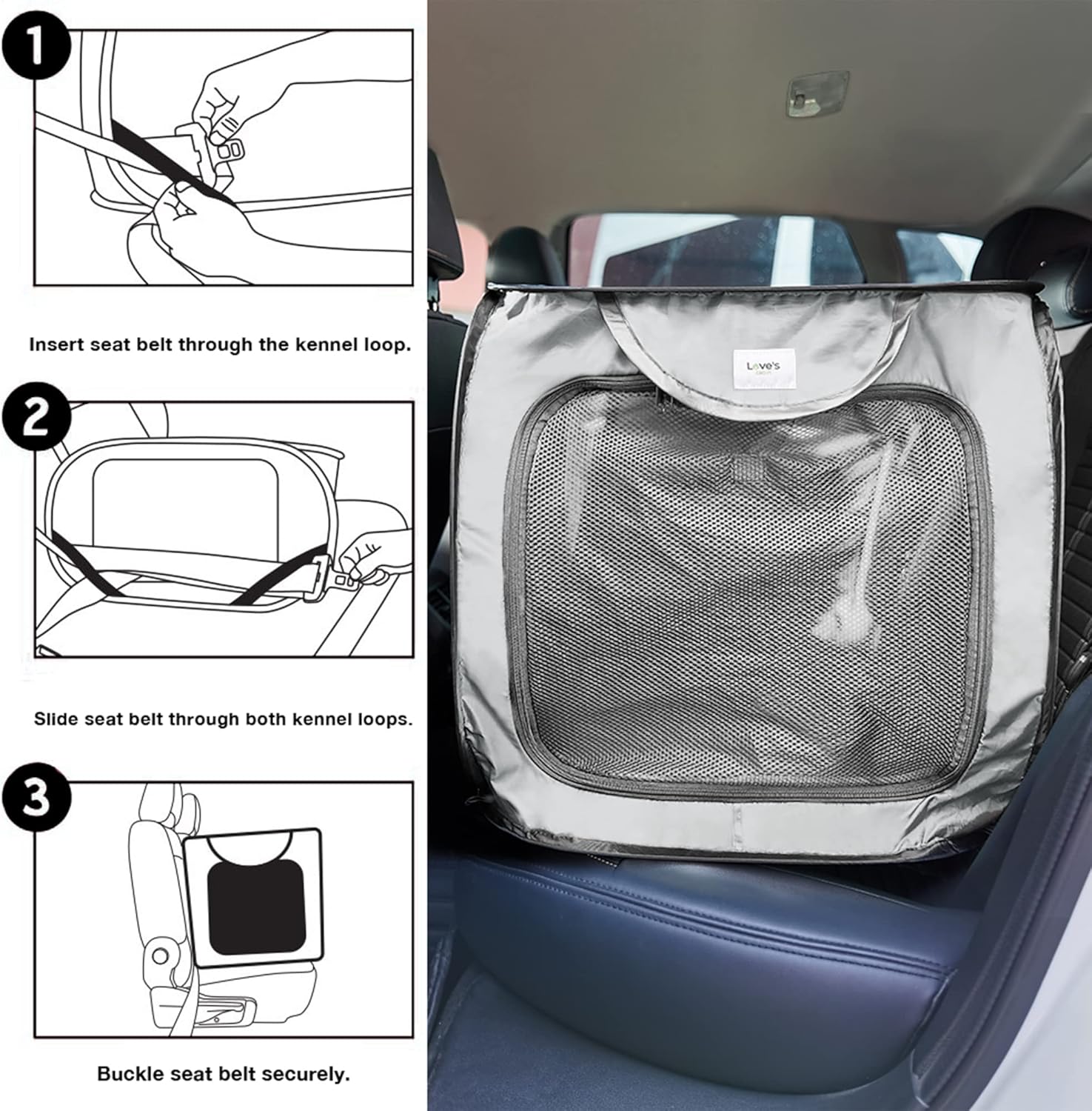 Love’s cabin 36in Portable Large Dog Bed – Pop Up Dog Kennel, Indoor Outdoor Crate for Pets, Portable Car Seat Kennel, Cat Bed Collection, Grey