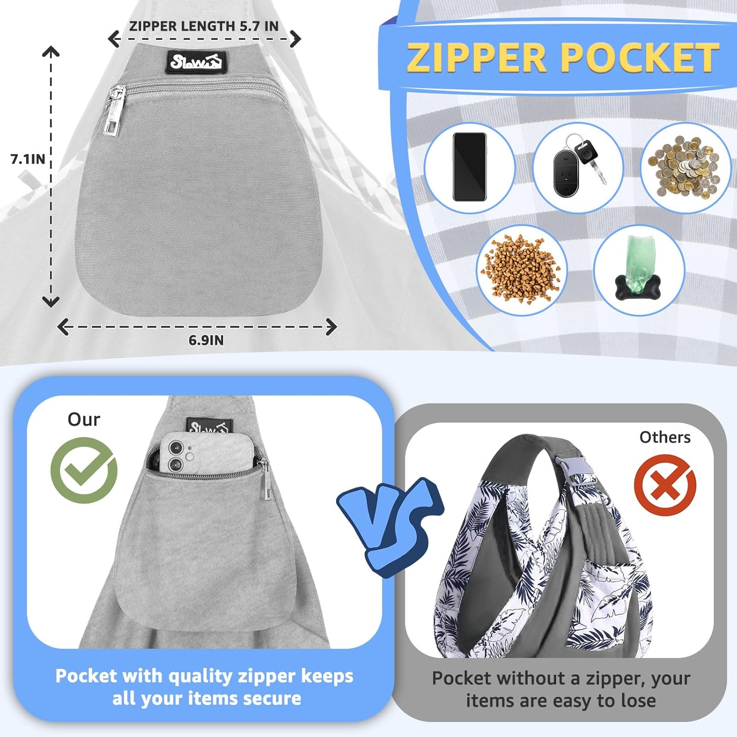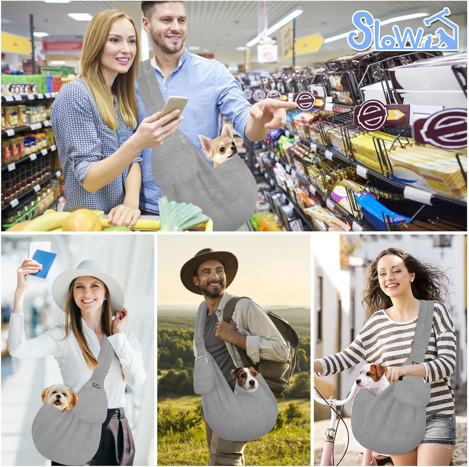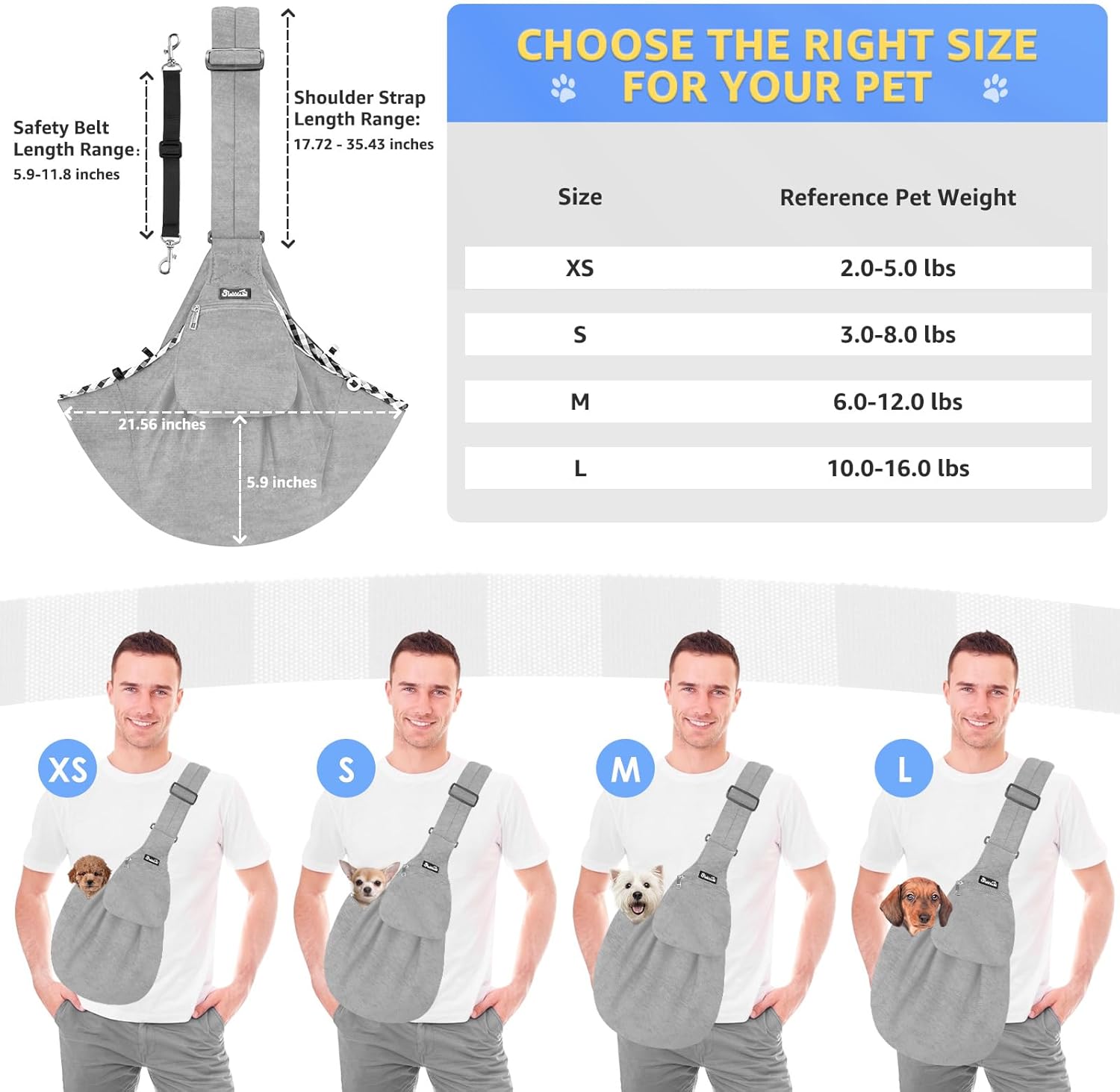 Lukovee Pet Sling, Hand Free Dog Sling Carrier Adjustable Padded Strap Tote Bag, Shoulder Bag with Safety Belt & Front Pocket for Small Dog Cat Puppy (Grey-WY,S)