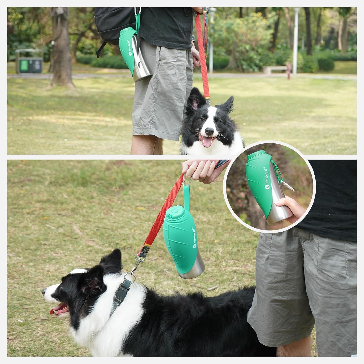 LumoLeaf Portable Dog Water Bottle 27 OZ, Stainless Steel Pet Travel Water Bottle Dispenser for Walking, Hiking and Outdoor, Portable Water Bowl for Large Dogs (Green)