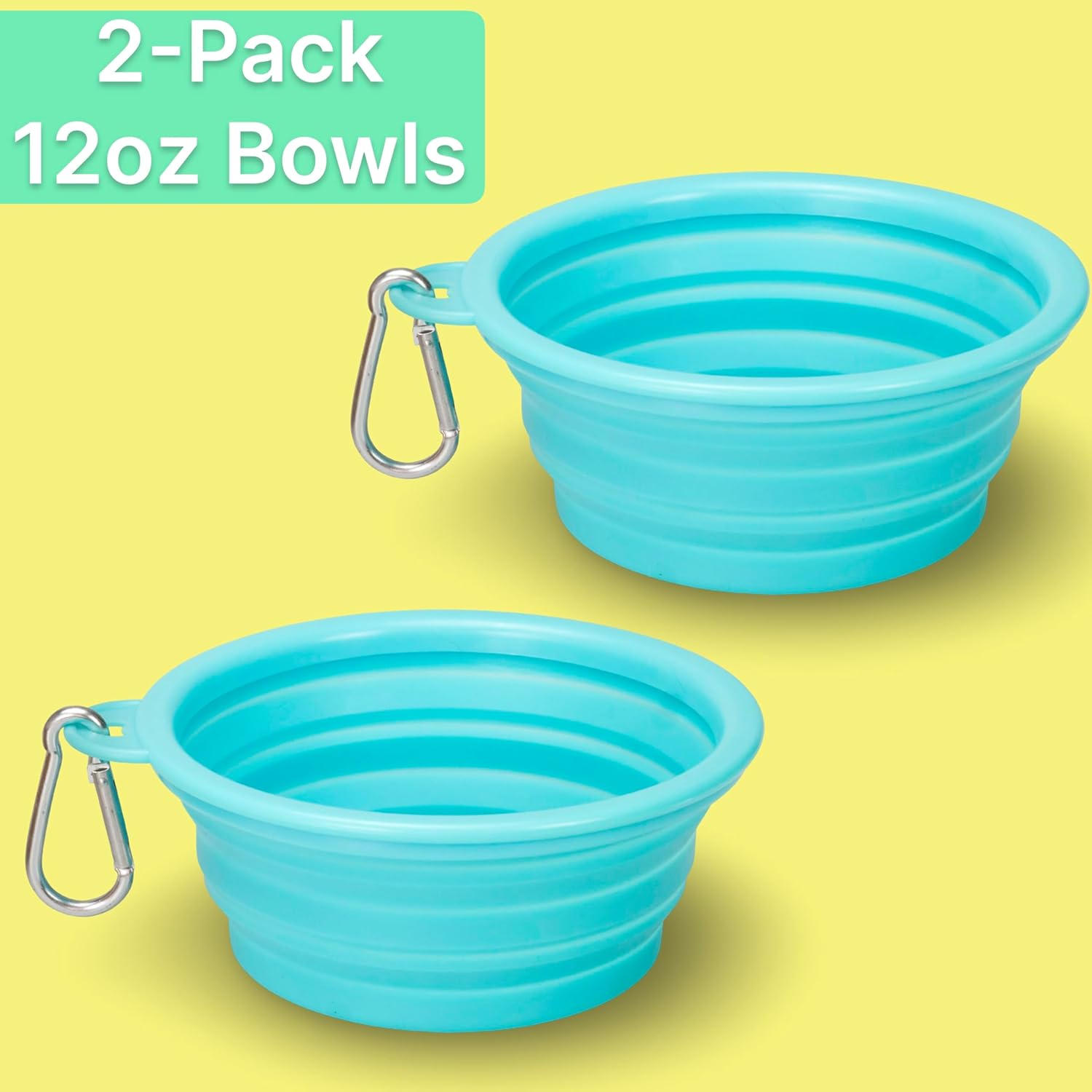 Made Easy Kit Portable Collapsible Dog Bowl for Water or Food Great Pet Travel Bowl in Multiple Sizes (Teal Teal, Standard 12oz 2-Pack)