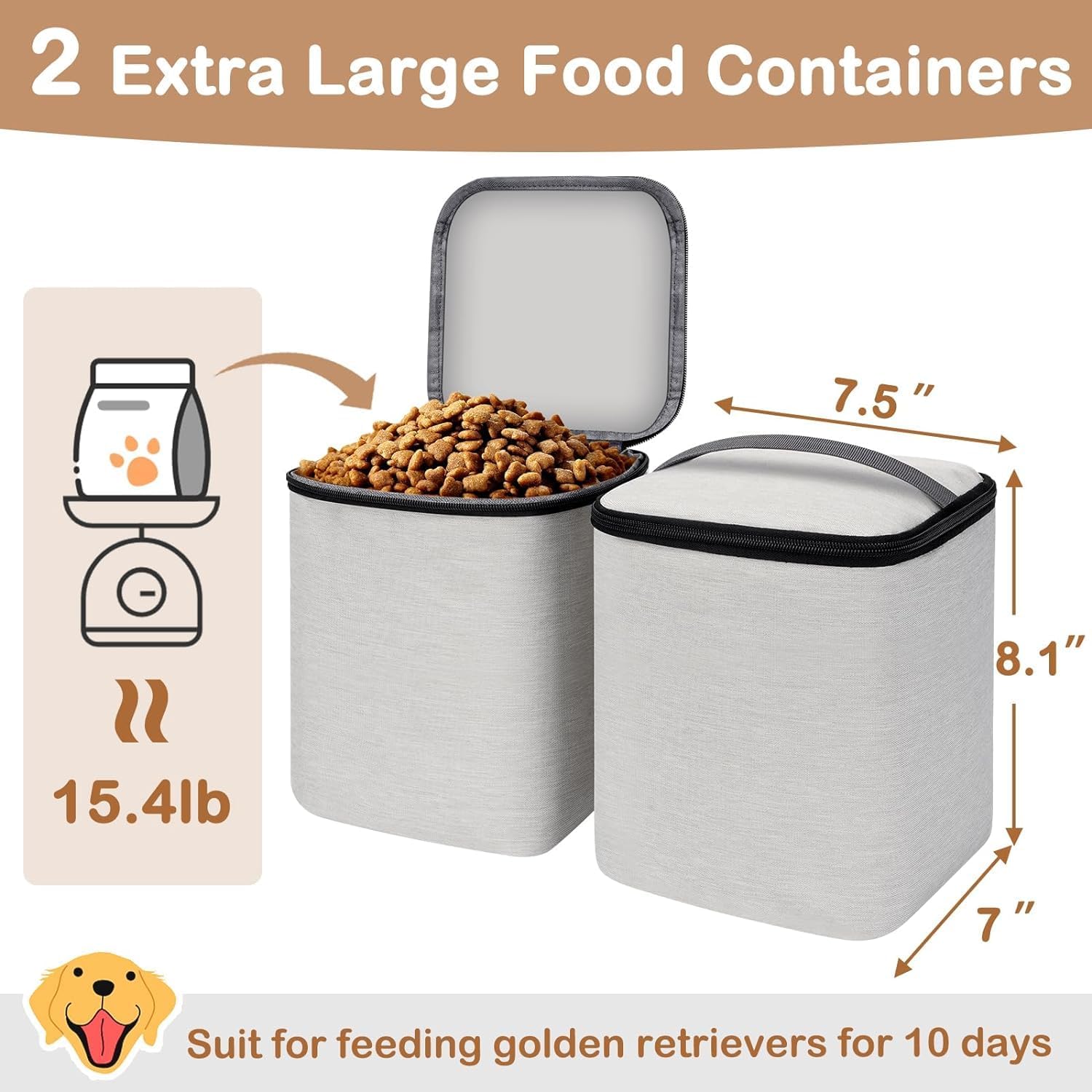 Long Trip Friendly Food Containers: The large travel bag for dogs comes with 2 water-resistant lined dog food containers, which can treat for an golden retriever for 10-days! Also includes two silicone collapsible dog bowls with carabiners. The pet travel bag is suitable for dogs of all sizes. and is easy to feed while out