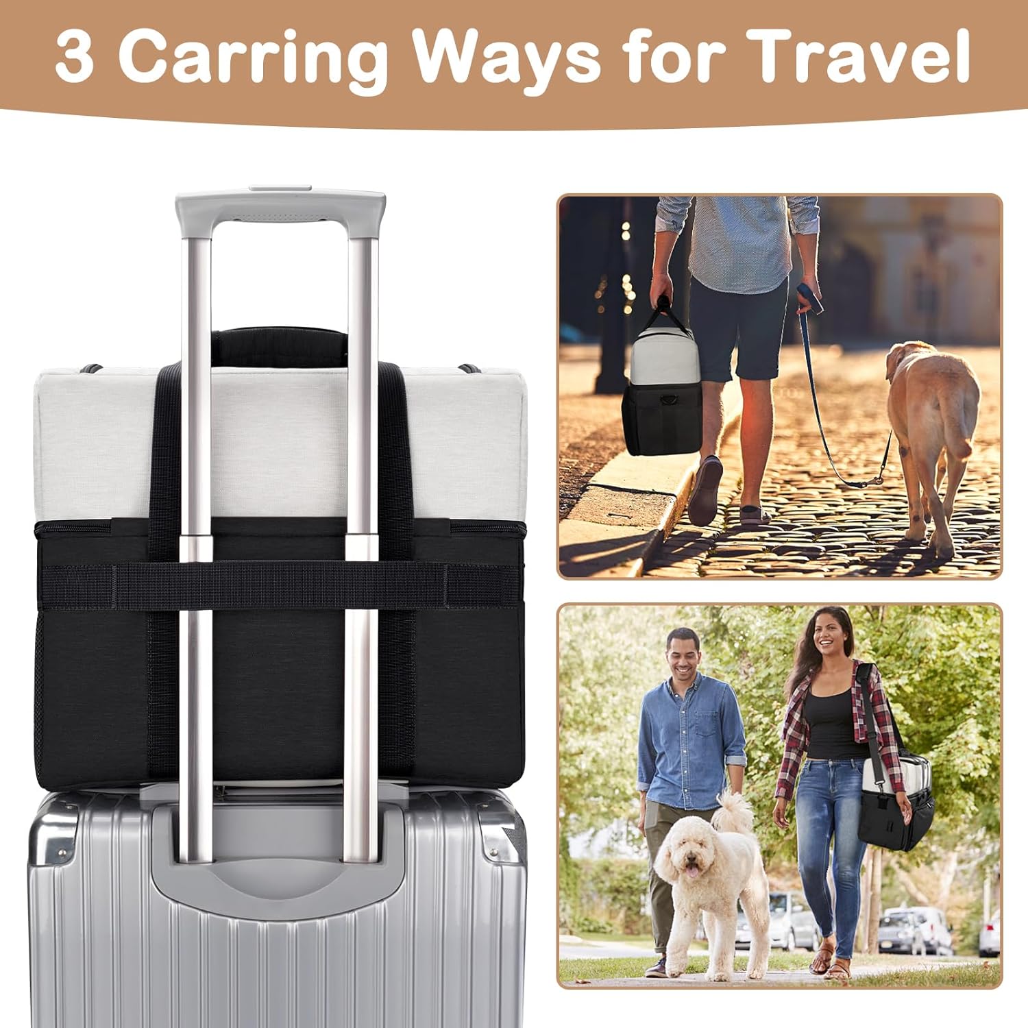 Easy Carrying Ways for Travel: The travel dog bag is designed comfortable padded handle strap, an adjustable shoulder strap, and a back luggage belt. Multiple carrying options available. The dog weekend bag is adapted for all outdoor activities with pets, never miss any moment with your furry friends. The pet travel bag is a great present idea for dog moms, dog dad, and dog parents
