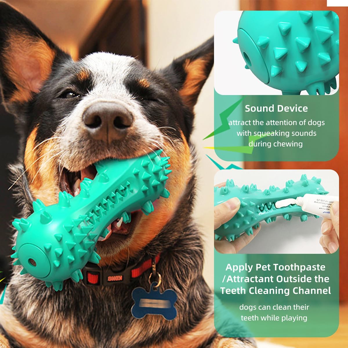 MANON ROSA Indestructible Dog Chew Toys – Durable Squeaky Interactive for Aggressive Chewers Travel-Friendly Floats for Small Medium Large Dogs Puppies (Green,Bone)