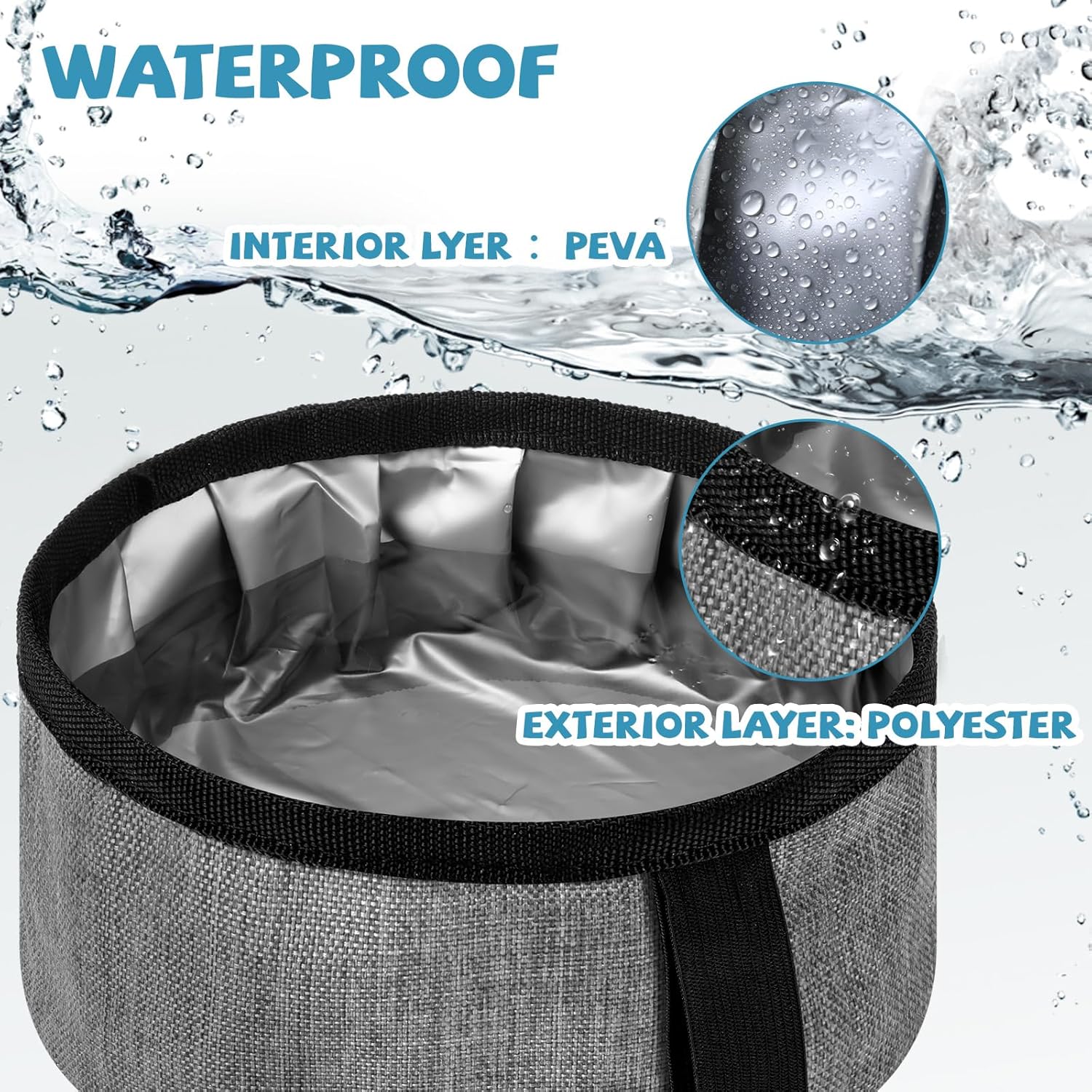 Long Term Use: the exterior layer of the foldable dog bowl is made of polyester, the interior layer made of PVEA material, waterproof and lightweight, sturdy and reliable, not easy to tear or fade, can be applied for a long time
