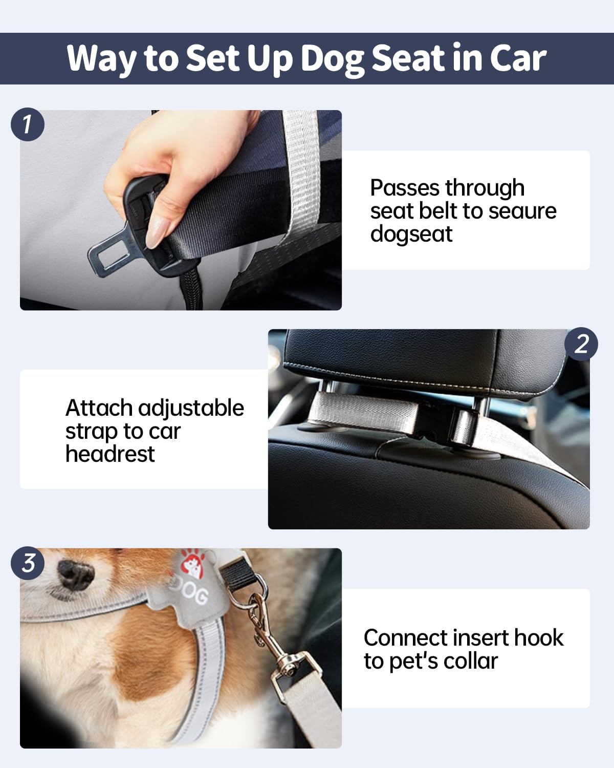 Removable and Washable Cover: The dog carriers for small dogs features a fully detachable design with a zipper, making cleaning easy. The filling is packaged in a removable bag for easy washing. Moreover, the doggie car seat cover is machine washable. The bottom of the dog car carrier is waterproof, while other materials have water-resistant properties, making the car seat for dogs medium 15-25 lbs easy to clean and preventing spills or accidents.