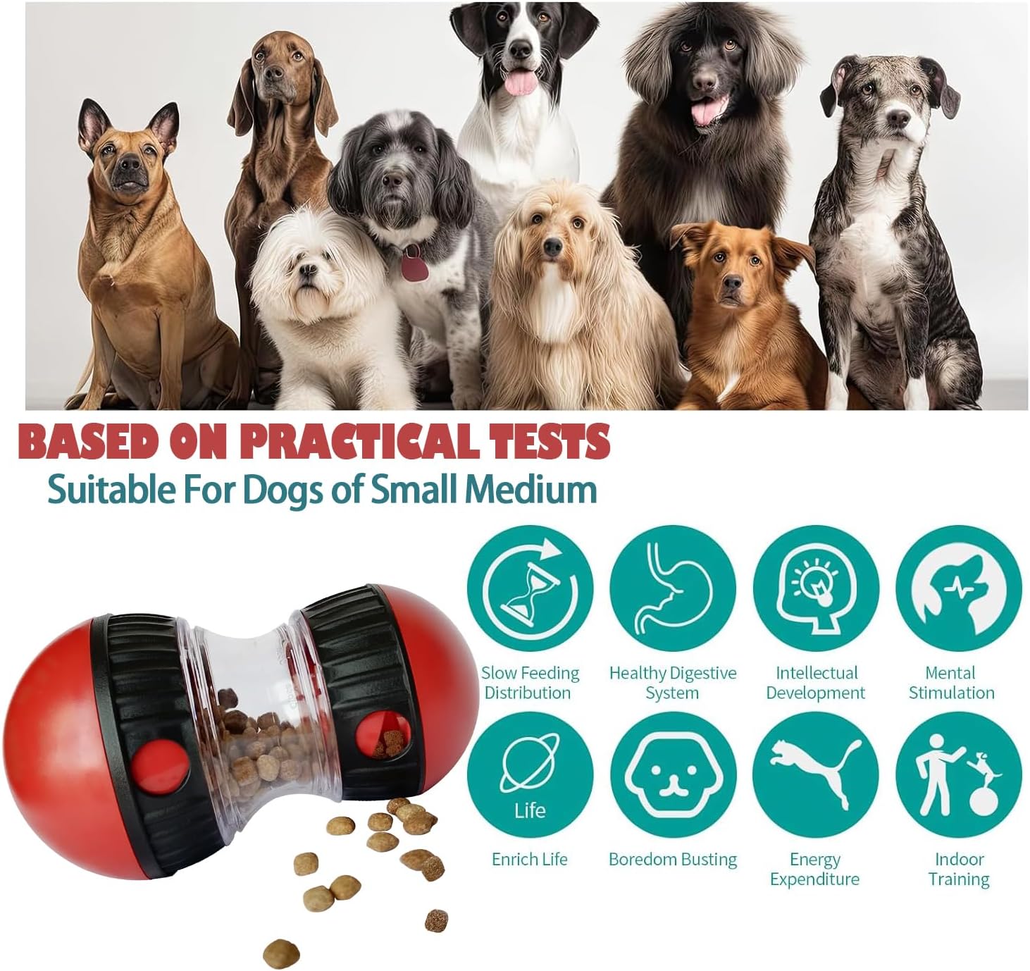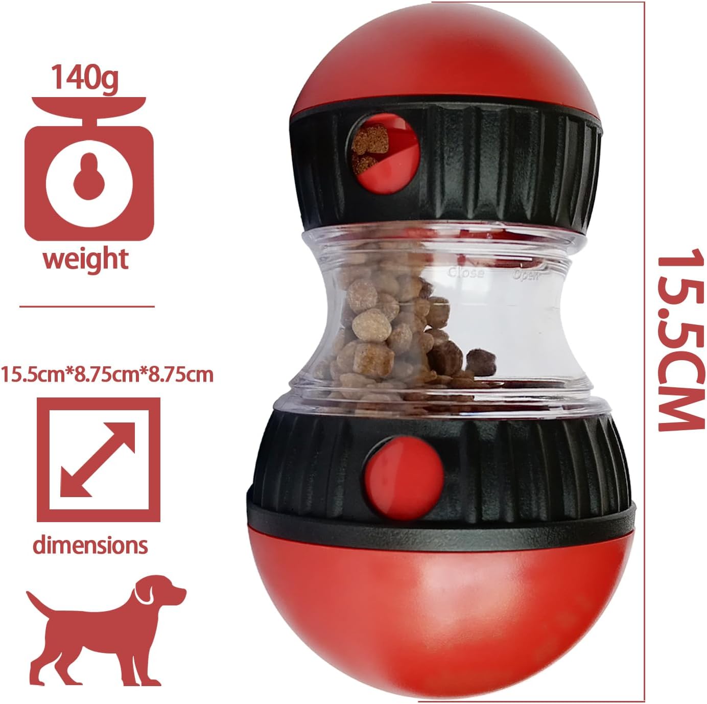 DOG INTERCTIVETOYS:Designed for interactive play, this product doubles as a dog treat toy anda treat ball for dogs, stimulating cognitive skills and keeping petsentertained. Whether your pet enjoys topple dog toys or puzzle toys for dogsmental stimulation, this feeder offers endless entertainment options.