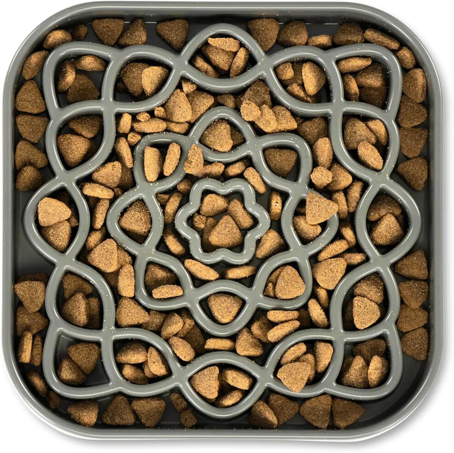 Messy Mutts Interactive Square Puzzle Feeder | Cool Grey (8 Cup) | 11′ x 11′ Square Slow Feeder for Dogs | Enrichment Food Dish for Slow Eating, Bloating