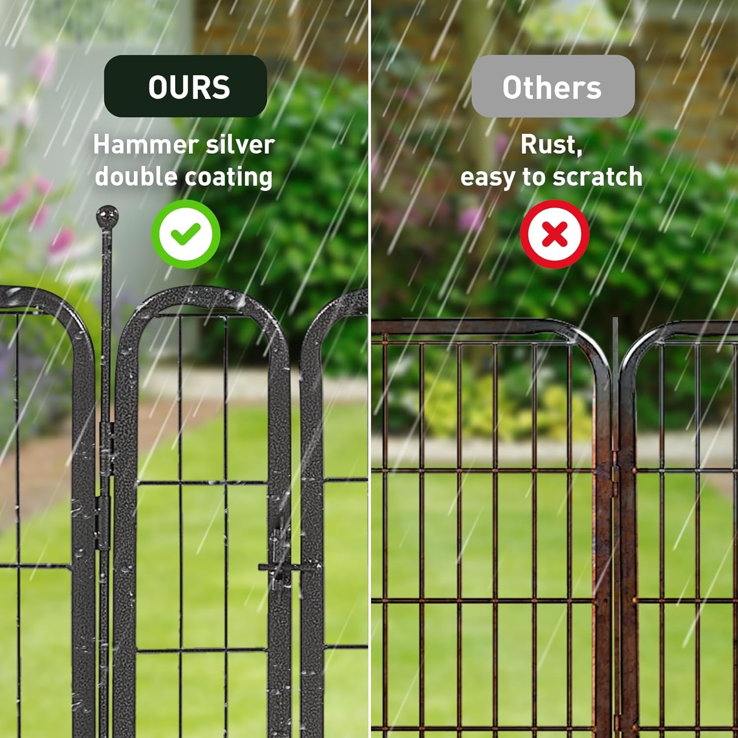 【Hammer Coating】Pet Fence’s surface has two layers of hammer pattern coating. The coating has a smooth silver-black surface, and is not easy to peel and rust. It can be placed in all kinds of weather.